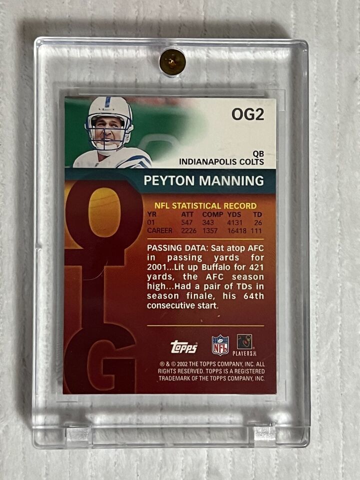 2002 Topps Peyton Manning Own The Game #OG2 Colts in Beautiful condition preserved in a hard case items are shipped out daily.