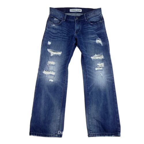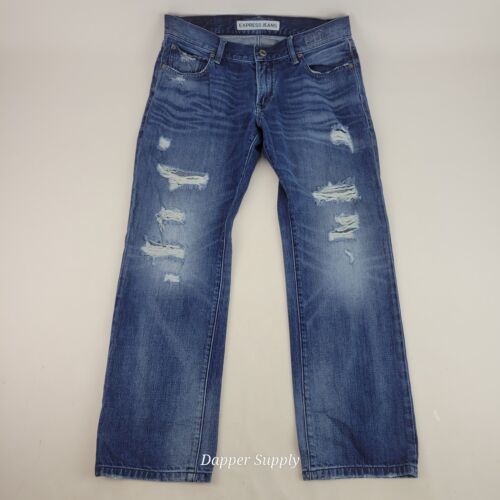 Express Mens Jeans Rocco Slim Fit Straight Leg Size 30x32 Distress