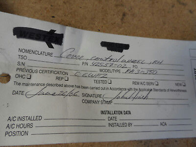 This item was purchased from an aviation surplus sale. This unit is in good cosmetic condition. It is tagged "AR, type PA-31-350". It has two tags on it. One tag calls it a "control shaft cover" and the other tag calls it a "control wheel cover". I am not able to test it. It only comes with what is shown in the pictures.
