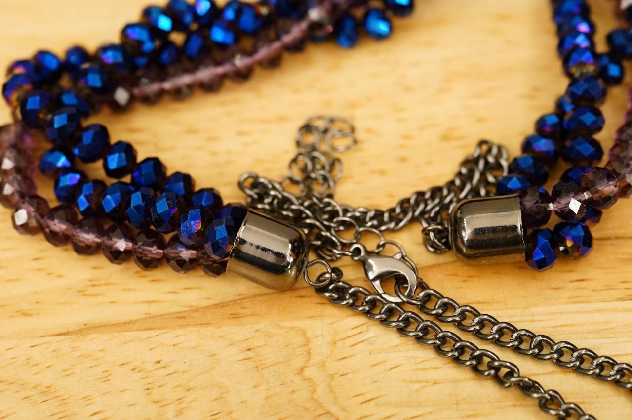 Costume Jewelry Purple Blue Metallic Faceted Beaded Necklace 18"