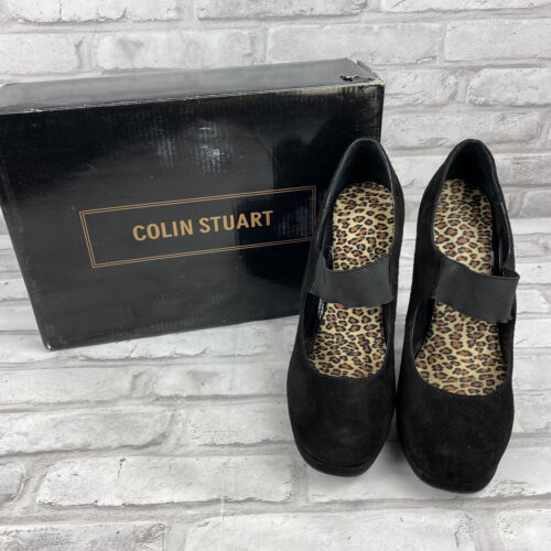 Colin Stuart Black Suede 5" Heel Sandal Women's Size 7 Cheetah Print In Sole