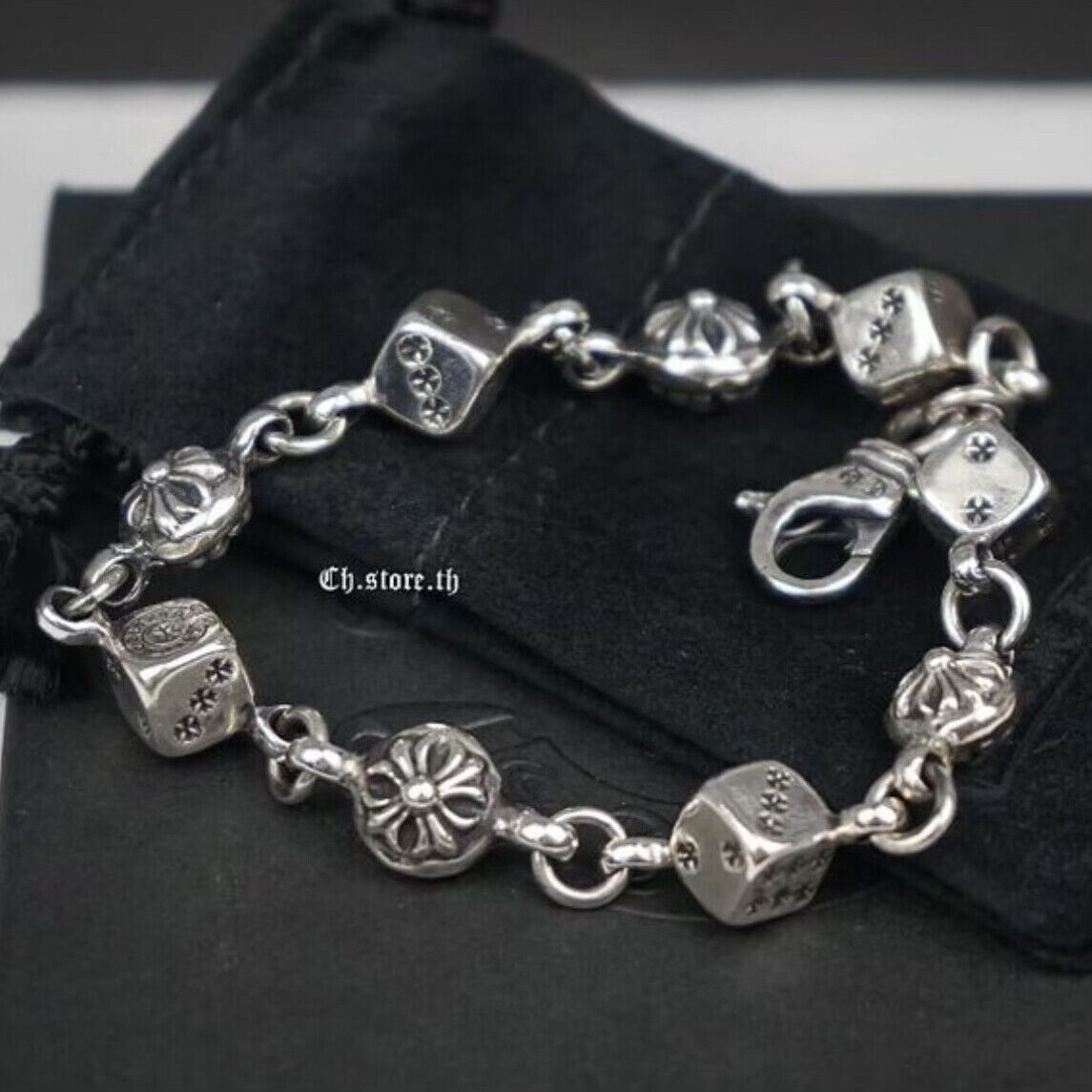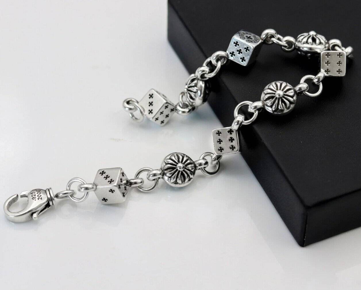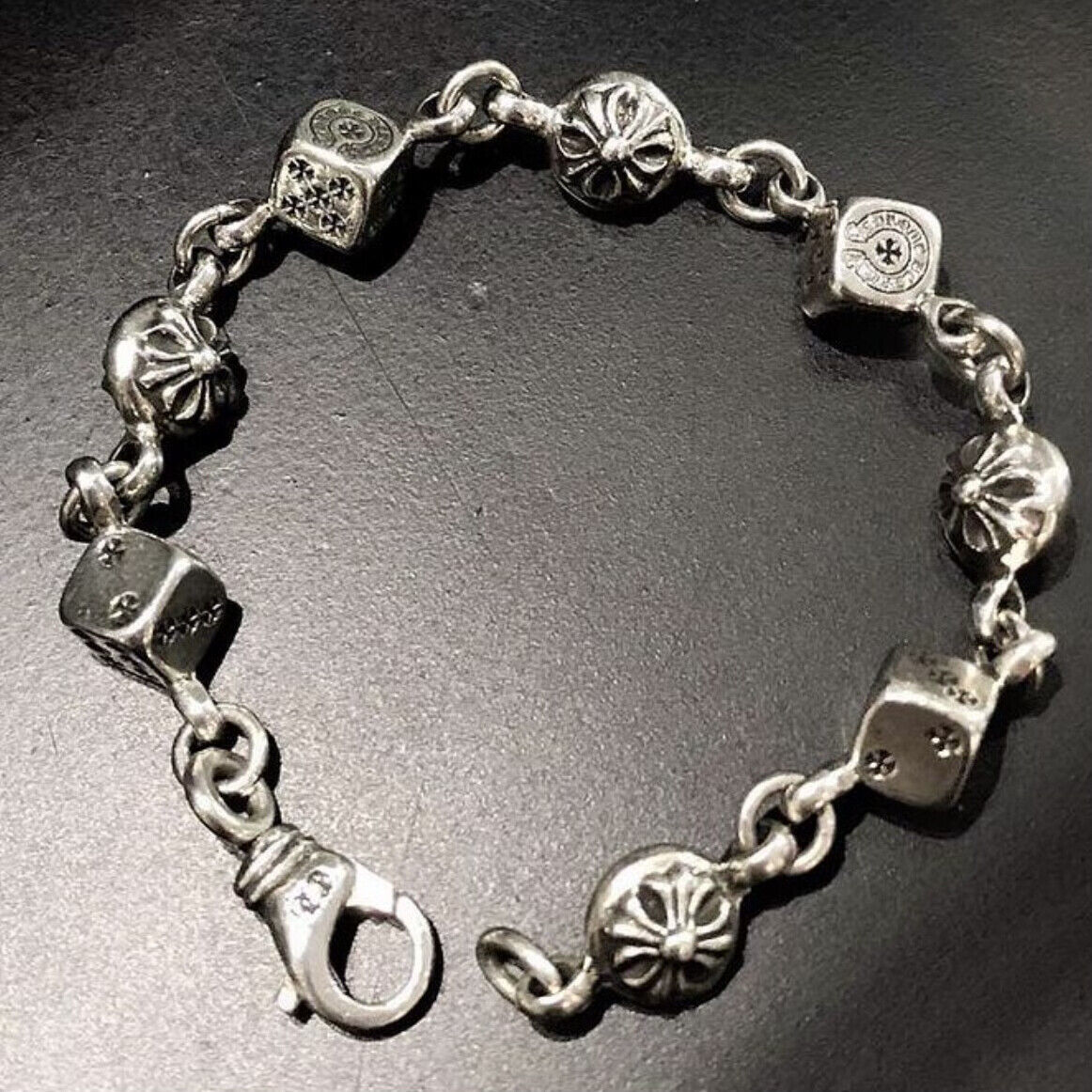 Chrome Silver Cross/Heart/Dice Men Bracelet and 50 similar items