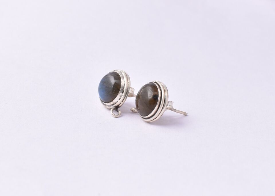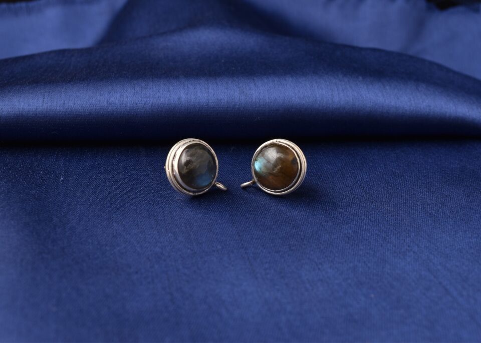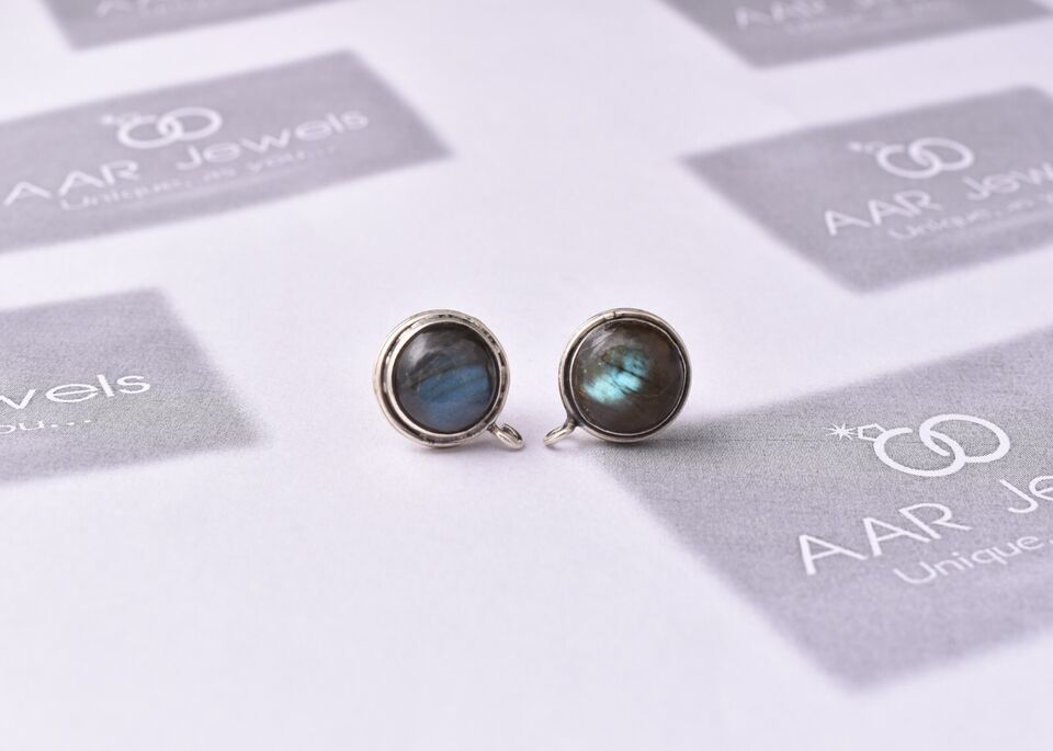 Solid Silver 925 Sterling Silver Genuine Labradorite Handcrafted Stud Earrings