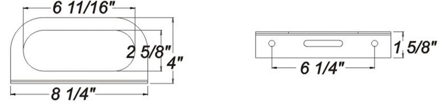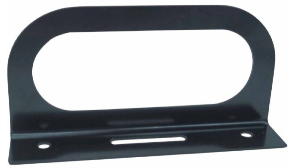 Light bar brackets have 6-11/16 in. long x 2-5/8 in. wide holes in the center for mounting oval lights and have two screw holes centered at the rounded ends of the hole Black, powder-coated bracket is made from sturdy, durable steel and can be used to mount lights vertically or horizontally Bracket base surface mounts on 6-1/4 in. centers Requires grommet for light installation Can be used or truck tail lights, stop lights, turn lights and more
