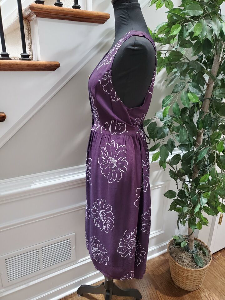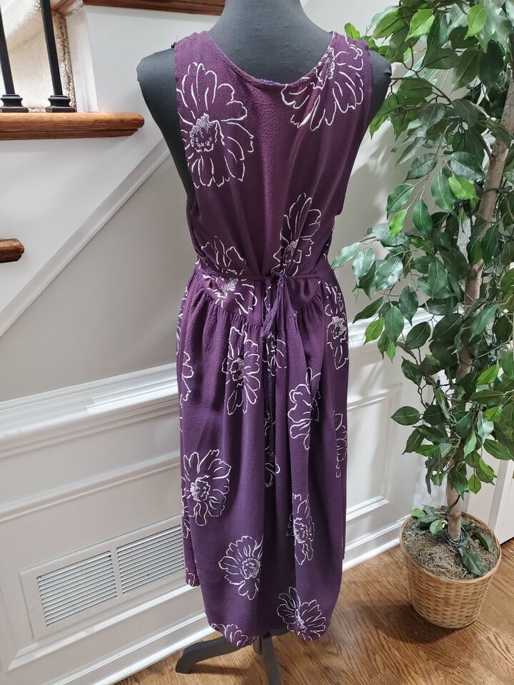 Vintage Stacey Tyler Purple Floral Rayon V-Neck Sleeveless Knee Length Dress 10