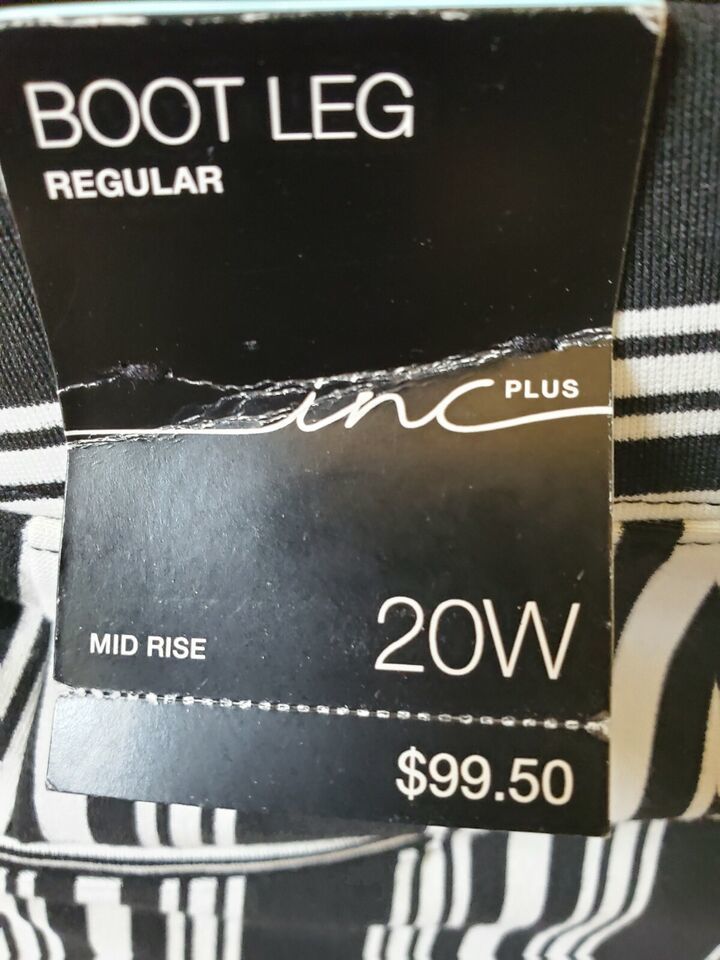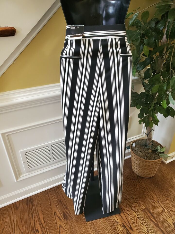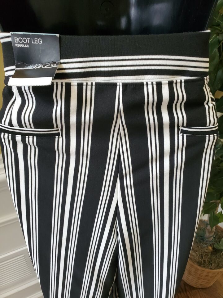 NEW INC Woman 20W Black White Stripe Pant Bootleg Mid Rise. Condition is "New with tags". Shipped with USPS Priority Mail.