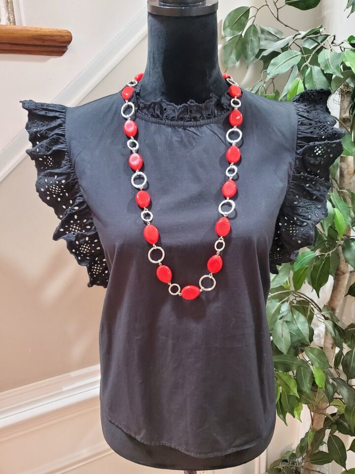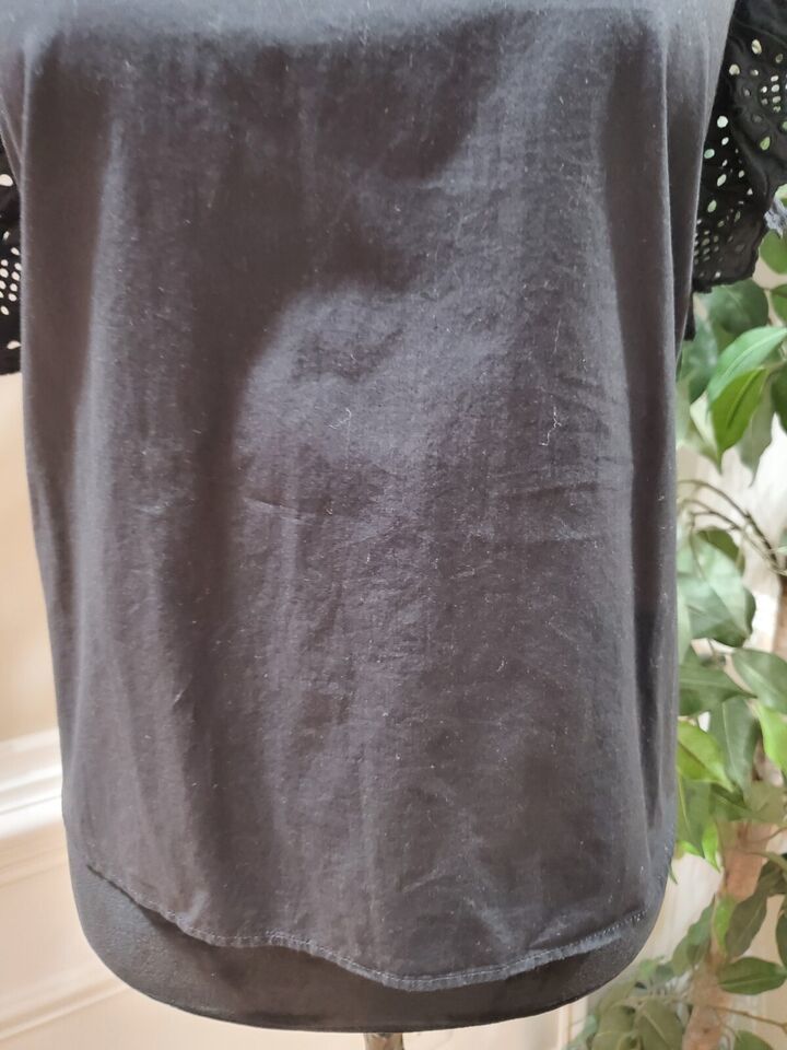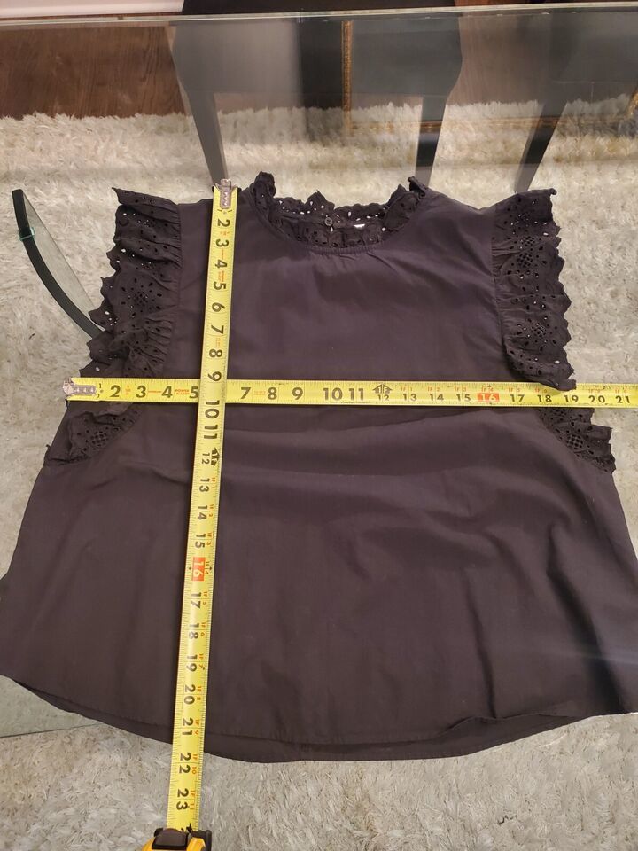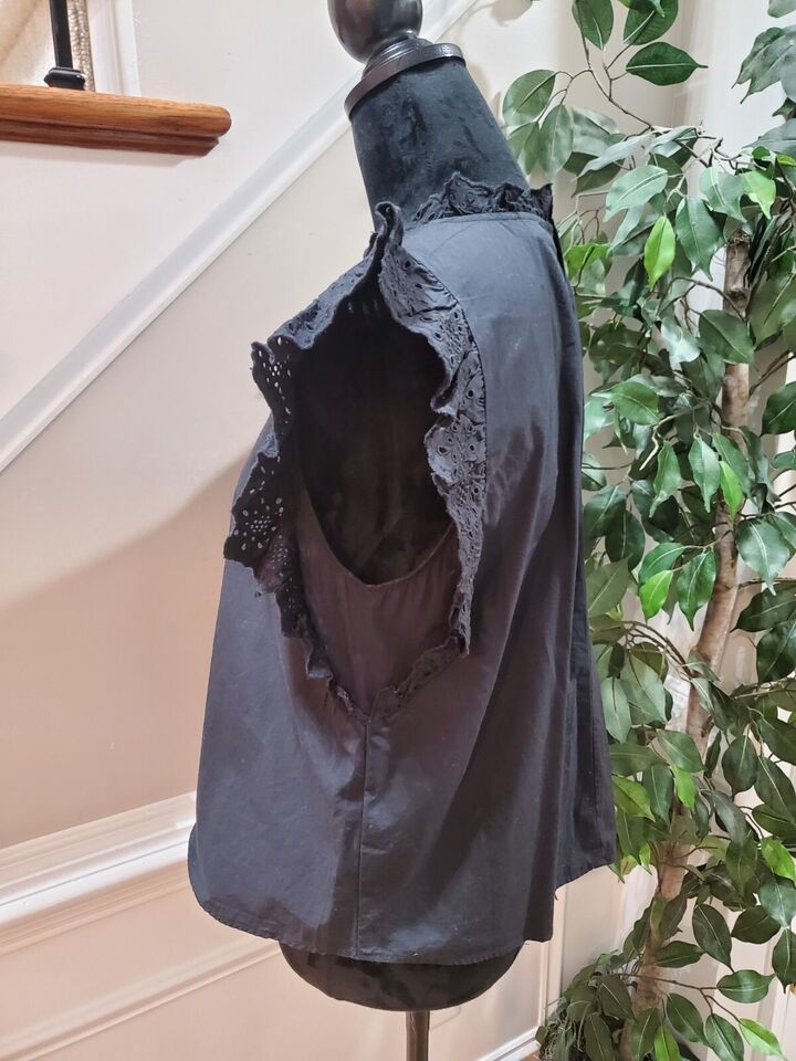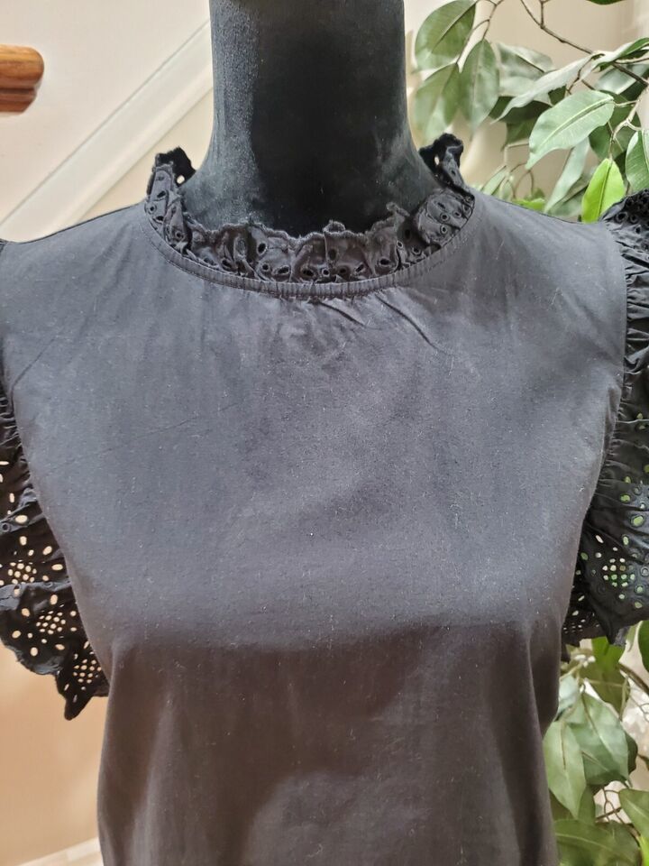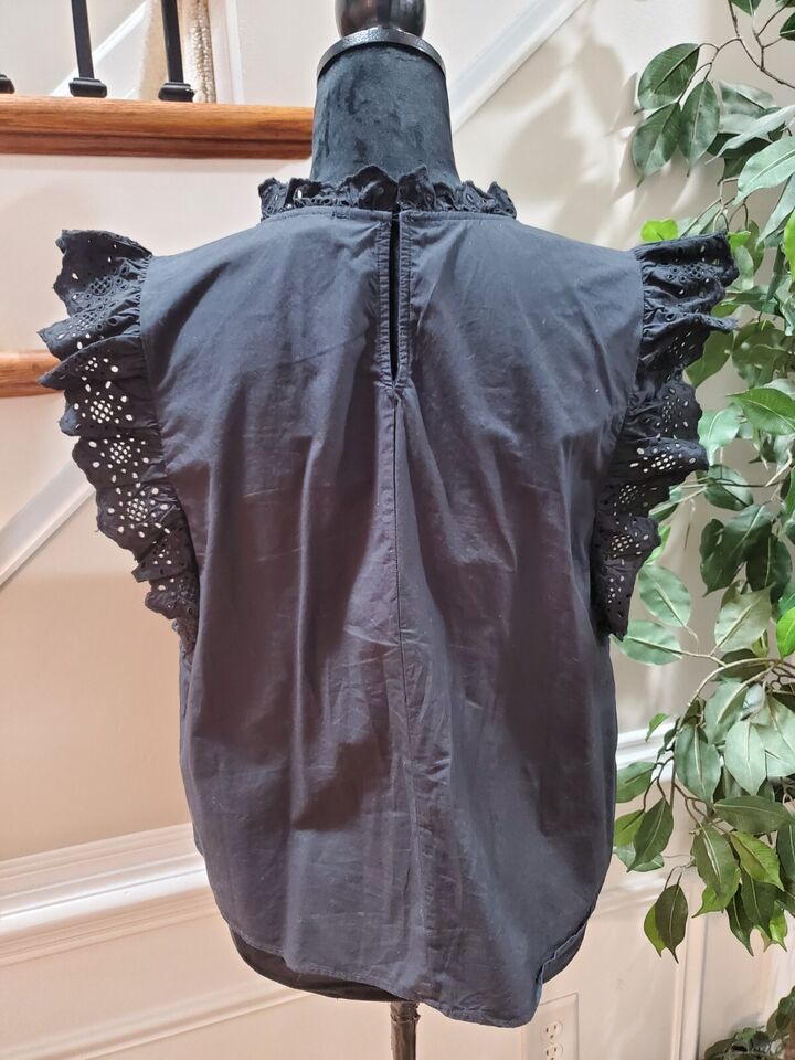 H&M Ruffle-Trimmed Black Eyelet Embroidery Cotton Sleeveless Top Blouse Medium