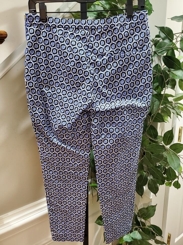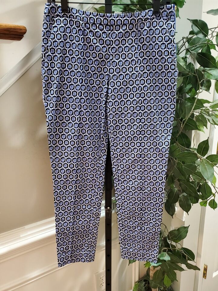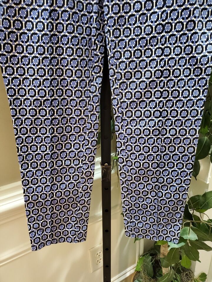 H&M Women's Blue Cotton Mid Rise Pull On Comfort Waist Trouser Pant Size 6