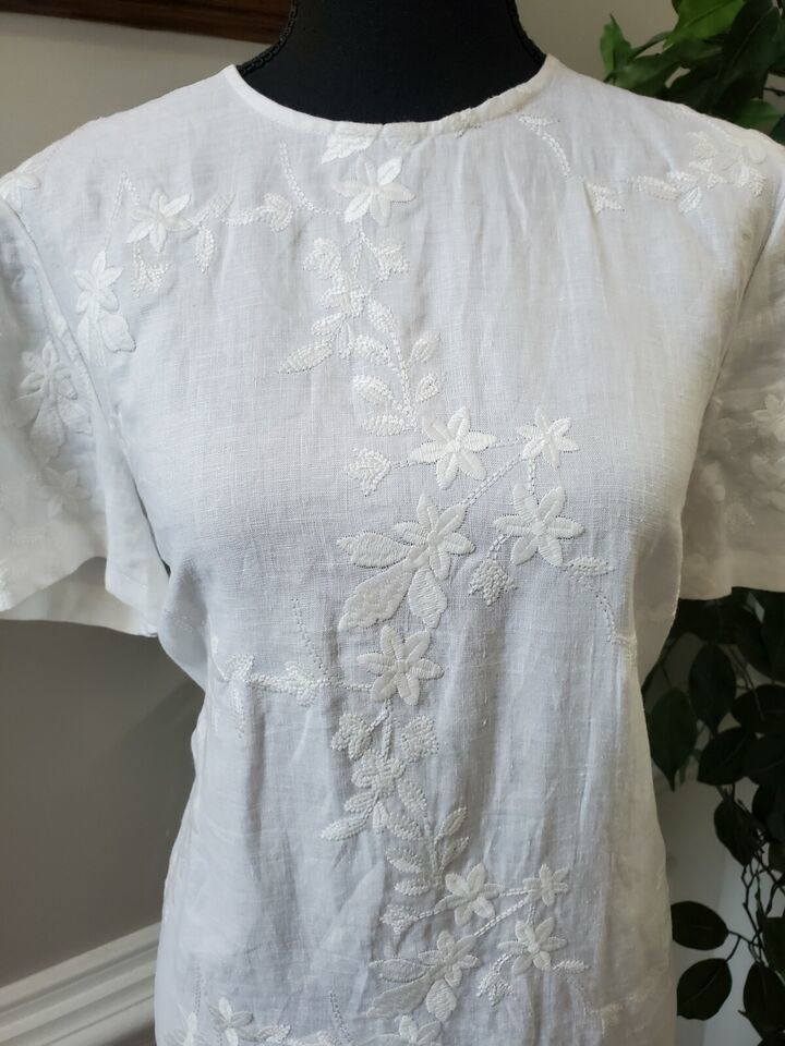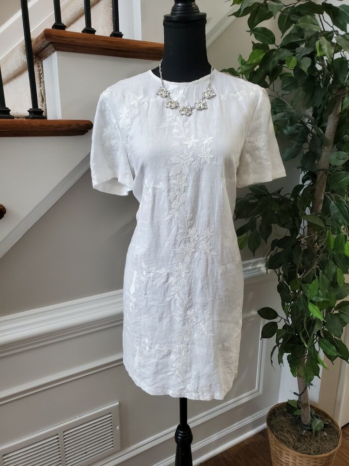 Zara Women's White 100% Polyester Crew Neck ShortSleeve KneeLength Dress Size M.