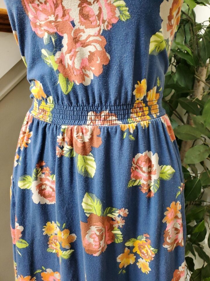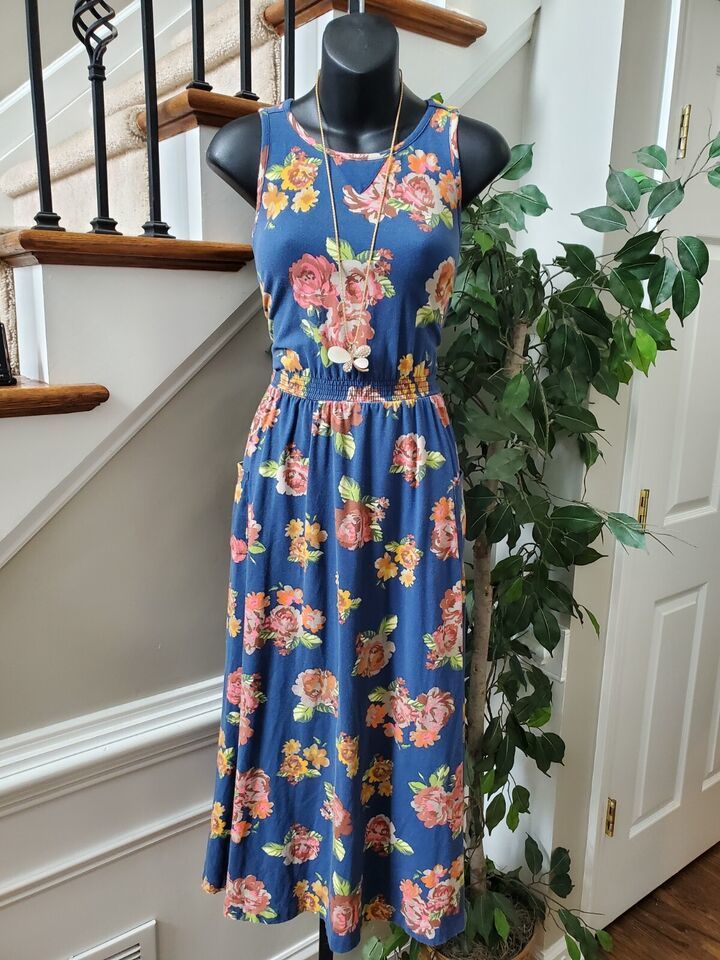 Joanna Gaines Womens Blue Floral Sleeveless Round Neck Knee Length Dress Size 10