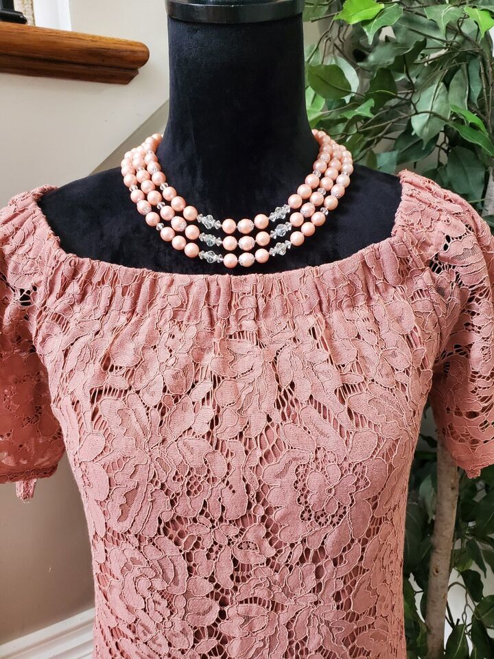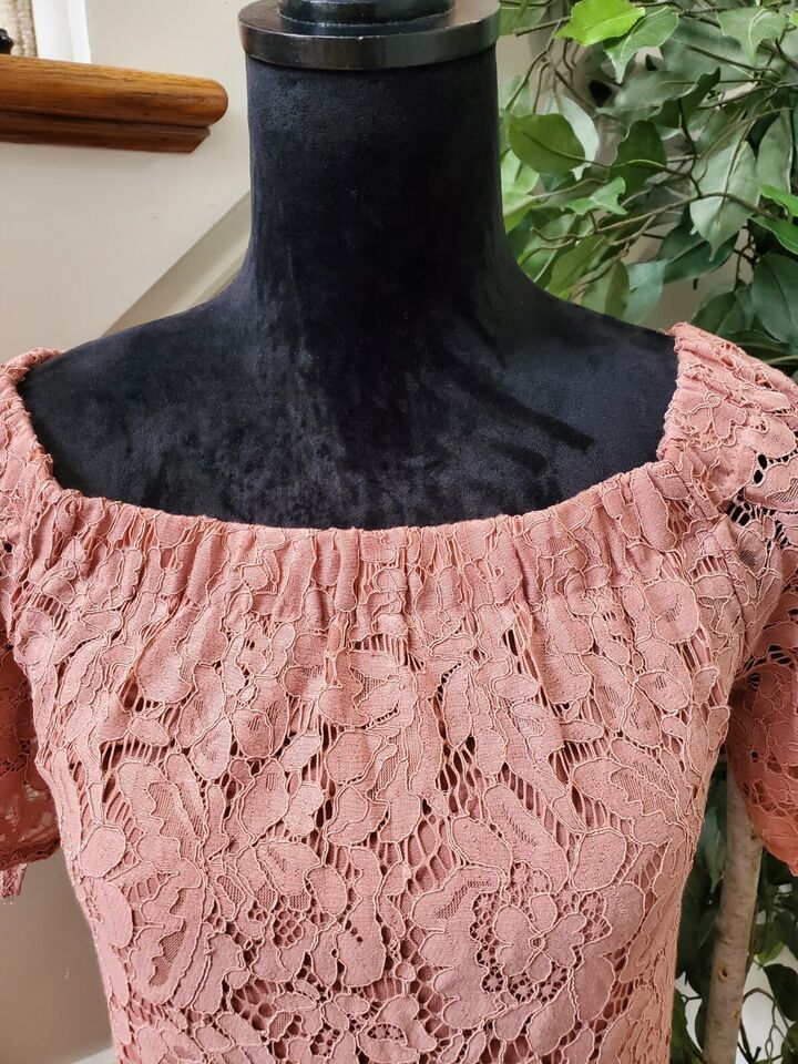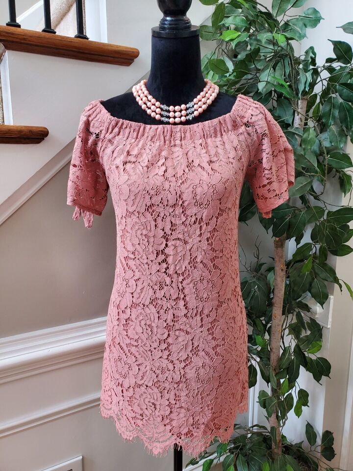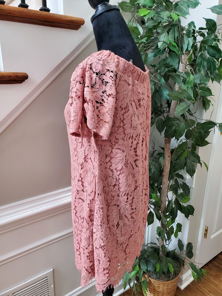 Haute Monde Womens Pink Floral Cotton Boat Neck Short Sleeve Knee Length Dress S.