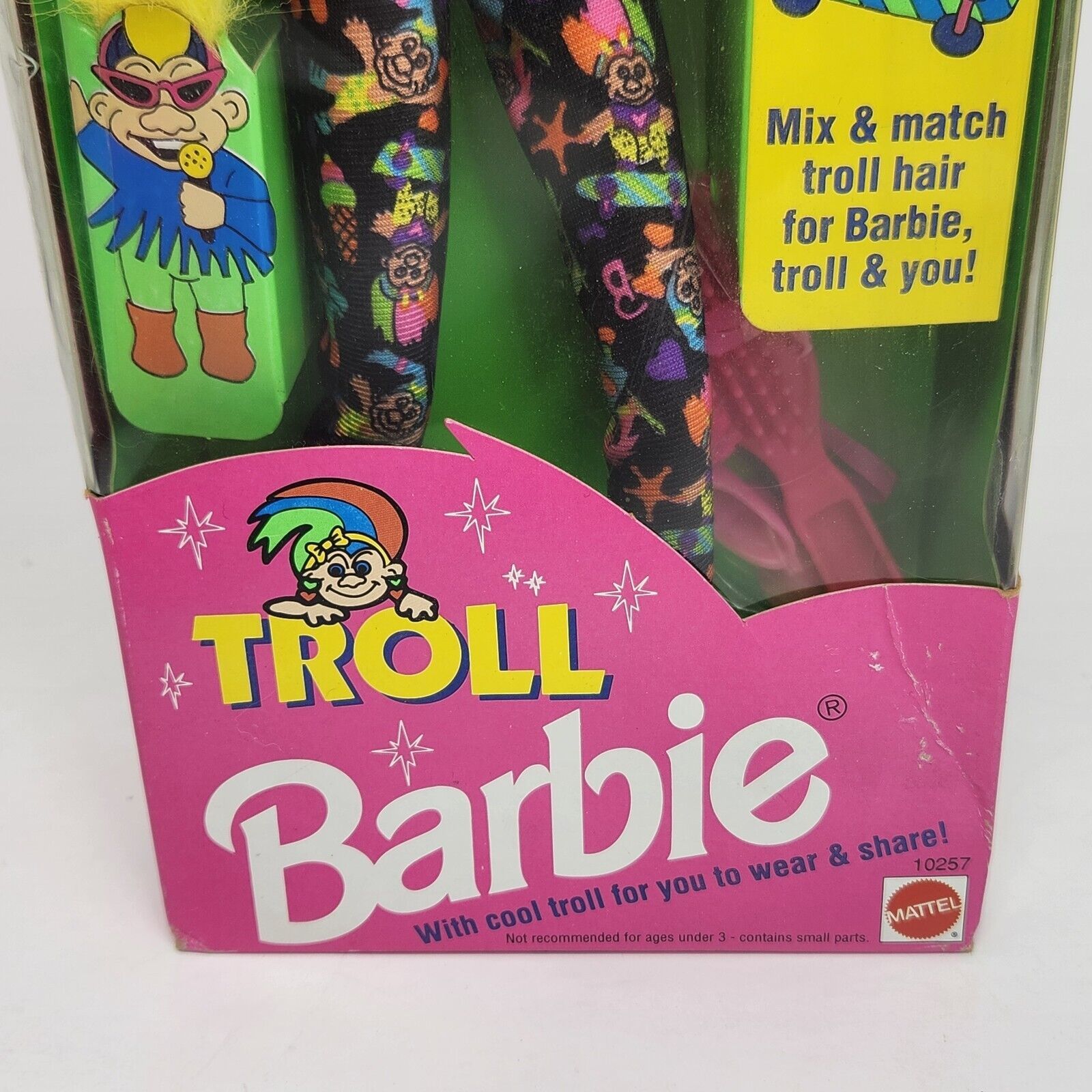 VINTAGE 1992 MATTEL BLONDE TROLL BARBIE DOLL MIX MATCH HAIR # 10257 ORIGINAL BOX