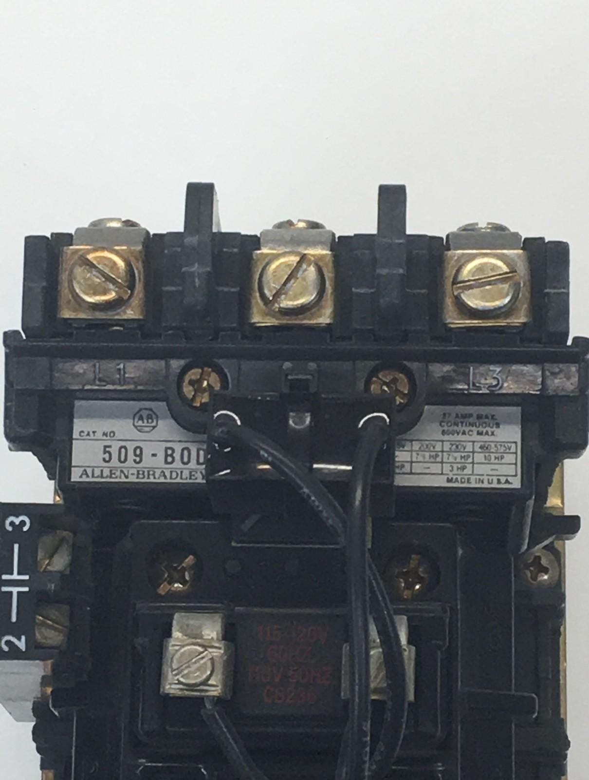 Allen-Bradley 509-B0D 120V Size1 Motor Starter, 120V Coil 600VAC 27Amp