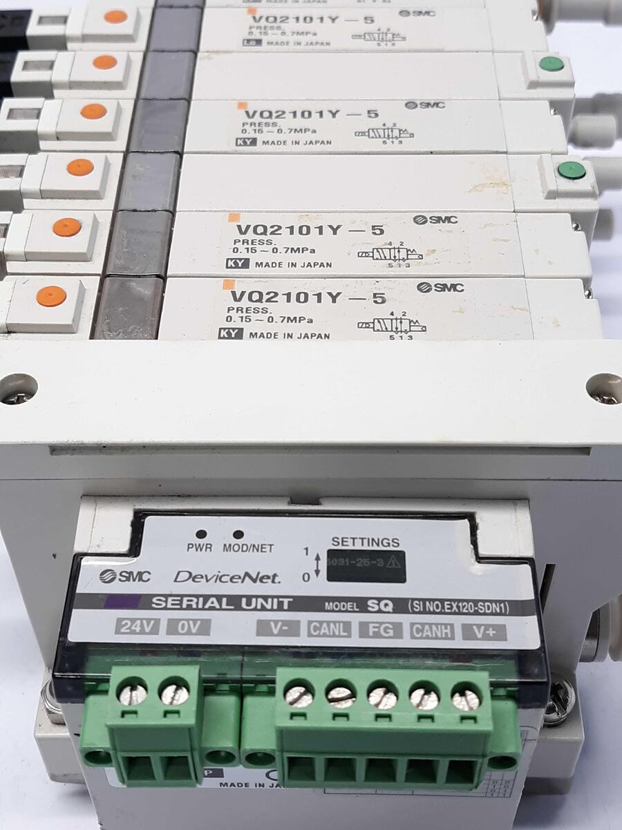 SMC EX120-SDN1 Serial 8-Port Interface Unit W/Six Solenoid Valves