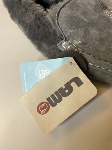 Step comfortably into these Lam House Shoes, perfect for casual occasions during the fall, winter, and spring seasons. These slip-on moccasin-style slippers are designed with a gray ultra-suede upper material and faux lambswool lining for ultimate comfort and warmth. The rubber outsole provides durability and traction, while the flax upper material adds a touch of classic style to your at-home footwear collection.
