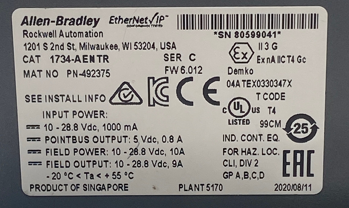 Allen-Bradley 1734-AENTR SER.C Network and 50 similar items