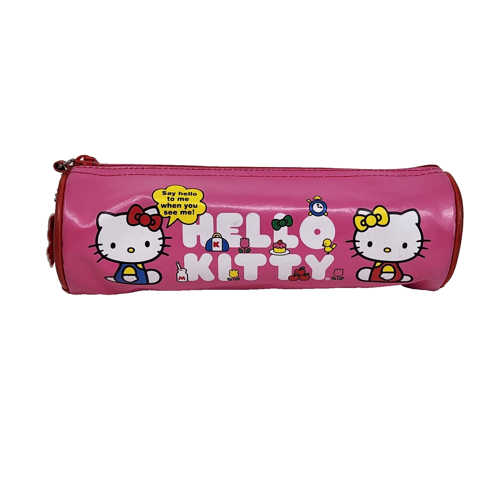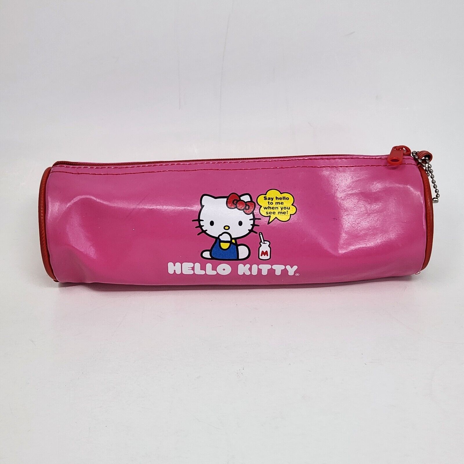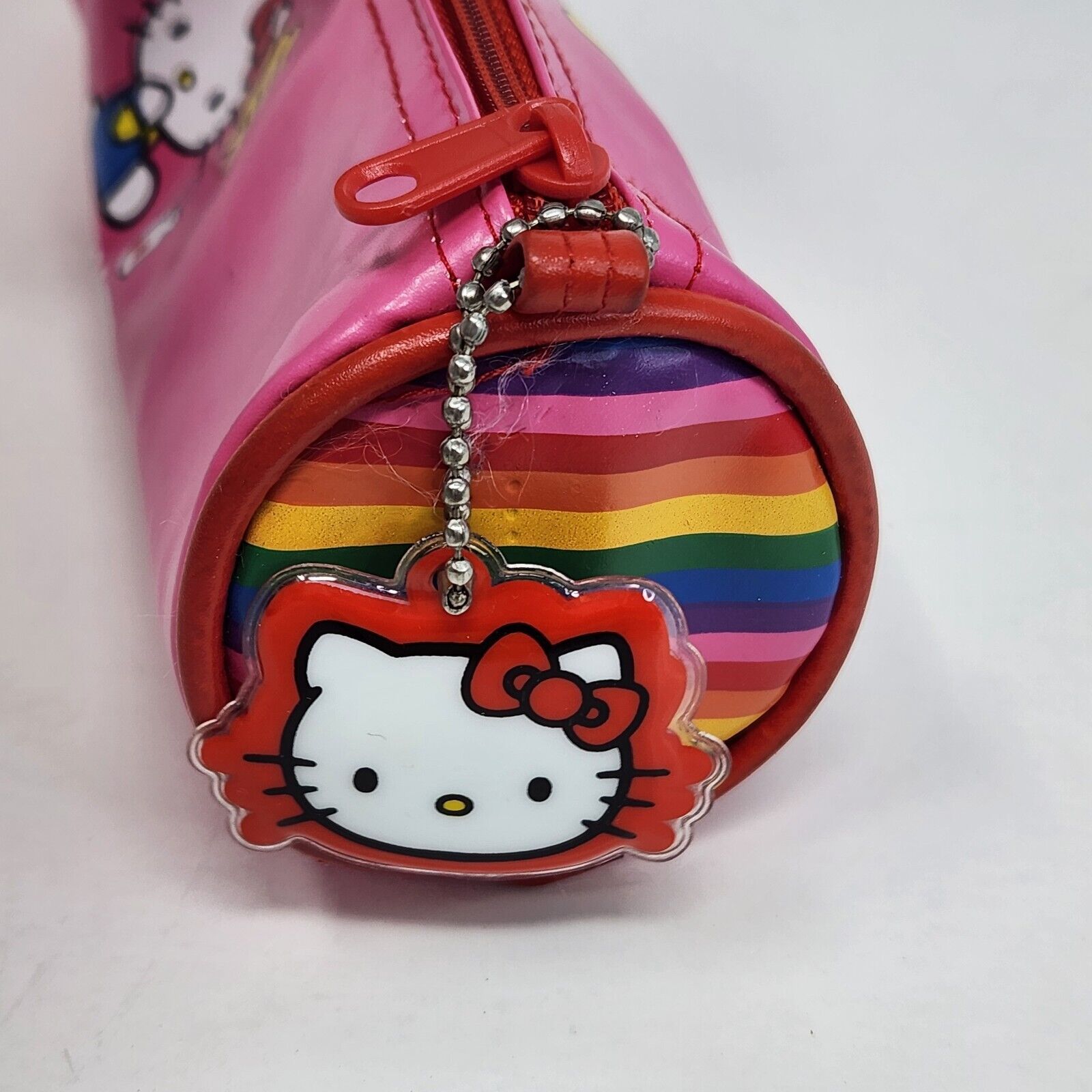 2012 SANRIO HELLO KITTY RAINBOW PINK PENCIL CASE W/ CHARM VINYL SMALL BAG ZIPS