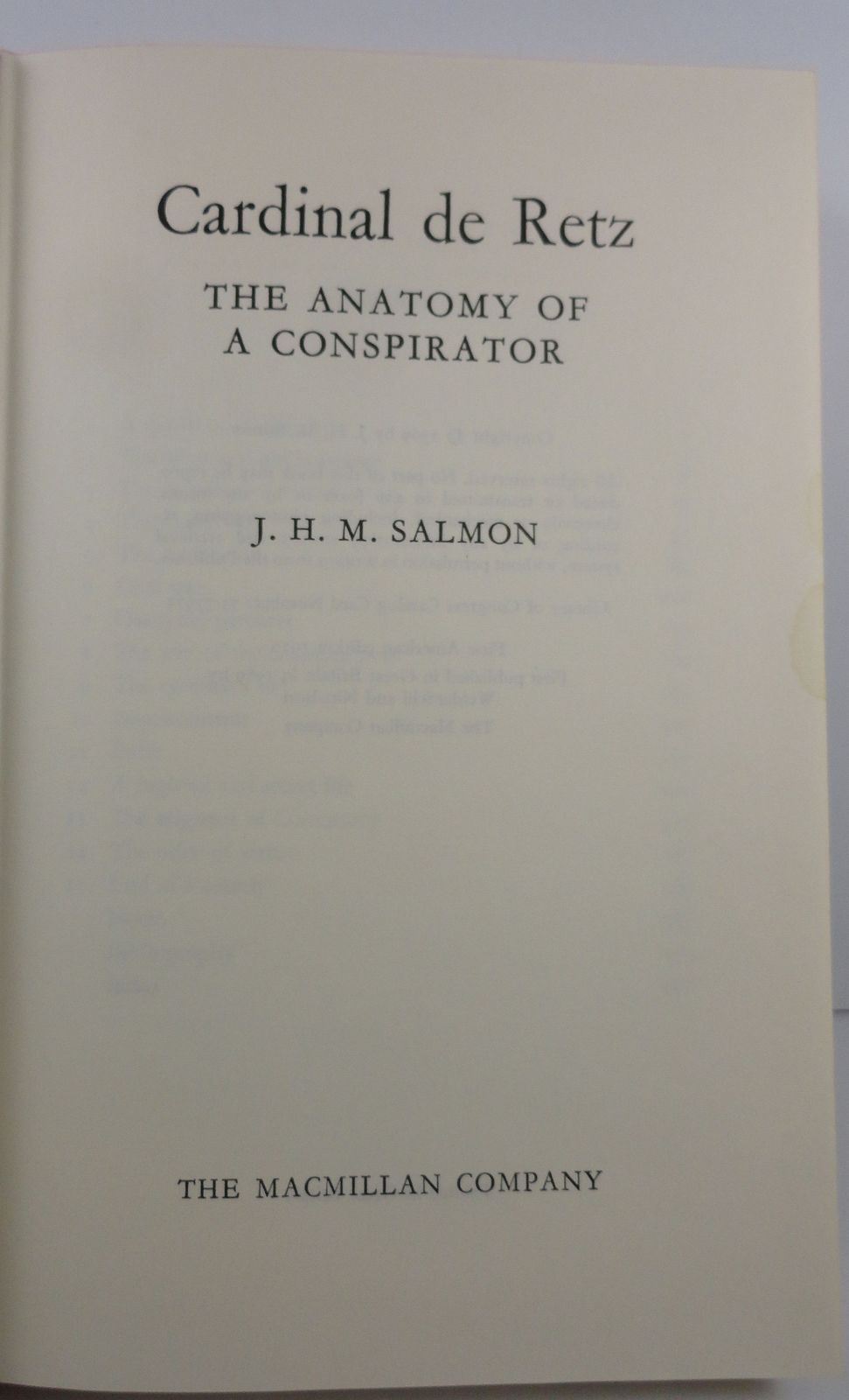 Cardinal de Retz Anatomy of a Conspirator J. H. M. Salmon