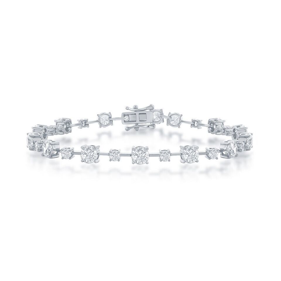 Sterling Silver 3mm & 5mm Round CZ 4-Prong Bracelet