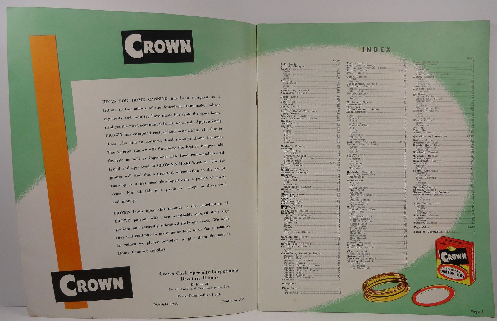 Crown Ideas for Home Canning by Crown Cork Corp. 1948