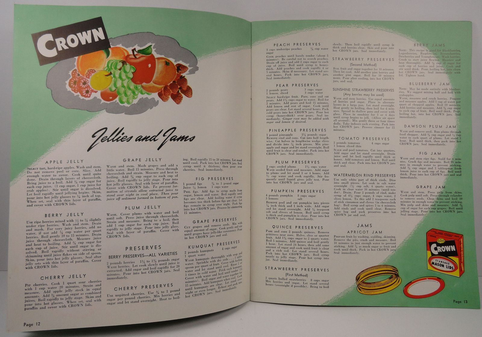 Instruction guide and recipes for home canning featuring Crown products. (#0000711)