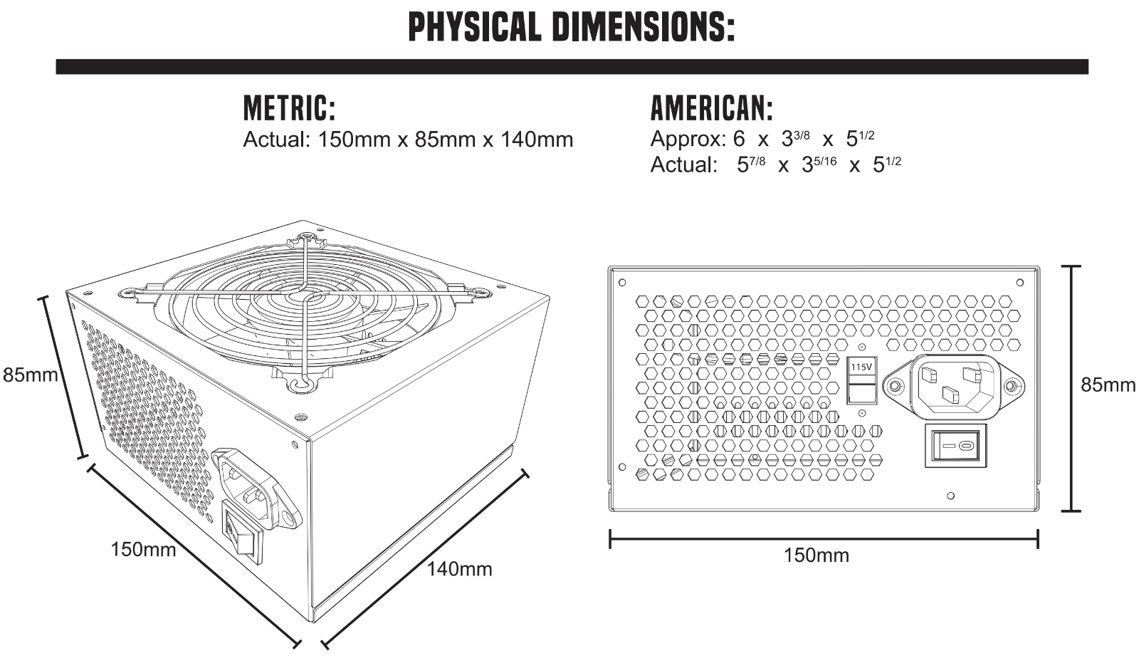 Actual: 150mm x 85mm x 140mm