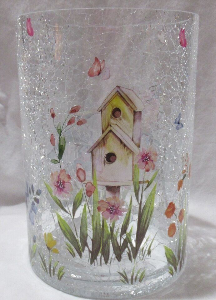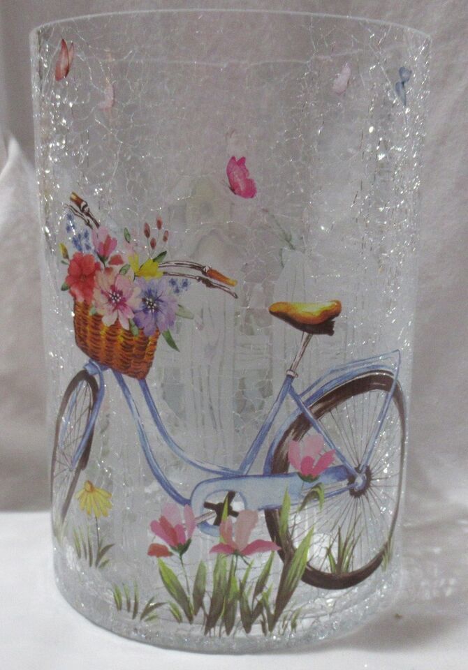 Yankee Candle Clear Crackle Large Jar Holder J/H ART IN THE PARK bike birdhouse