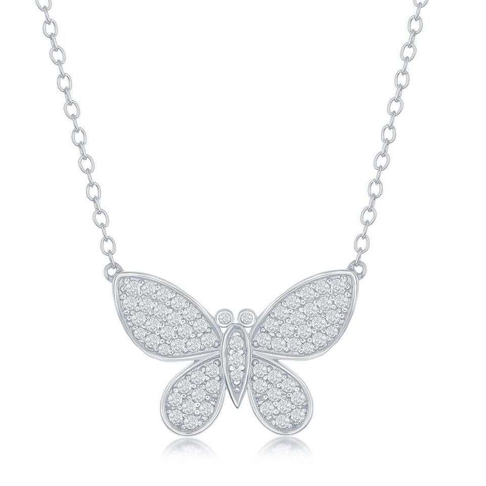 Sterling Silver Micro Pave Butterfly Necklace and similar items