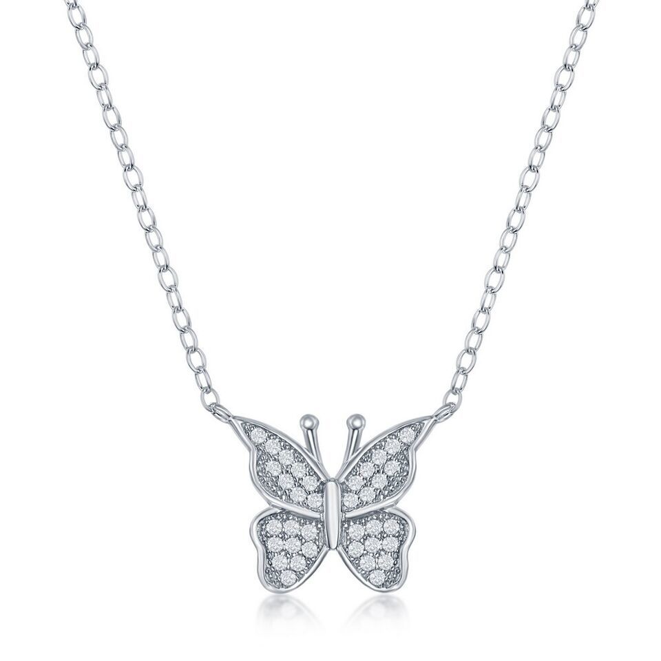 Sterling Silver Micro Pave CZ Butterfly Necklace