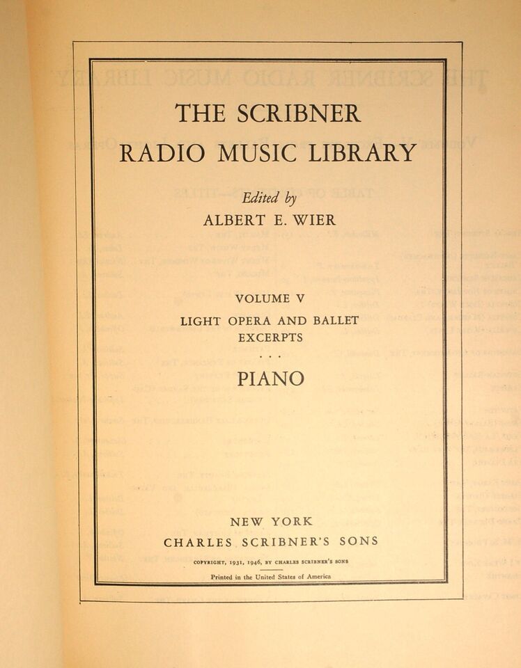 Scribner Radio Music Library Vol 5 Piano Light Opera & Ballet 1946 Hardcover