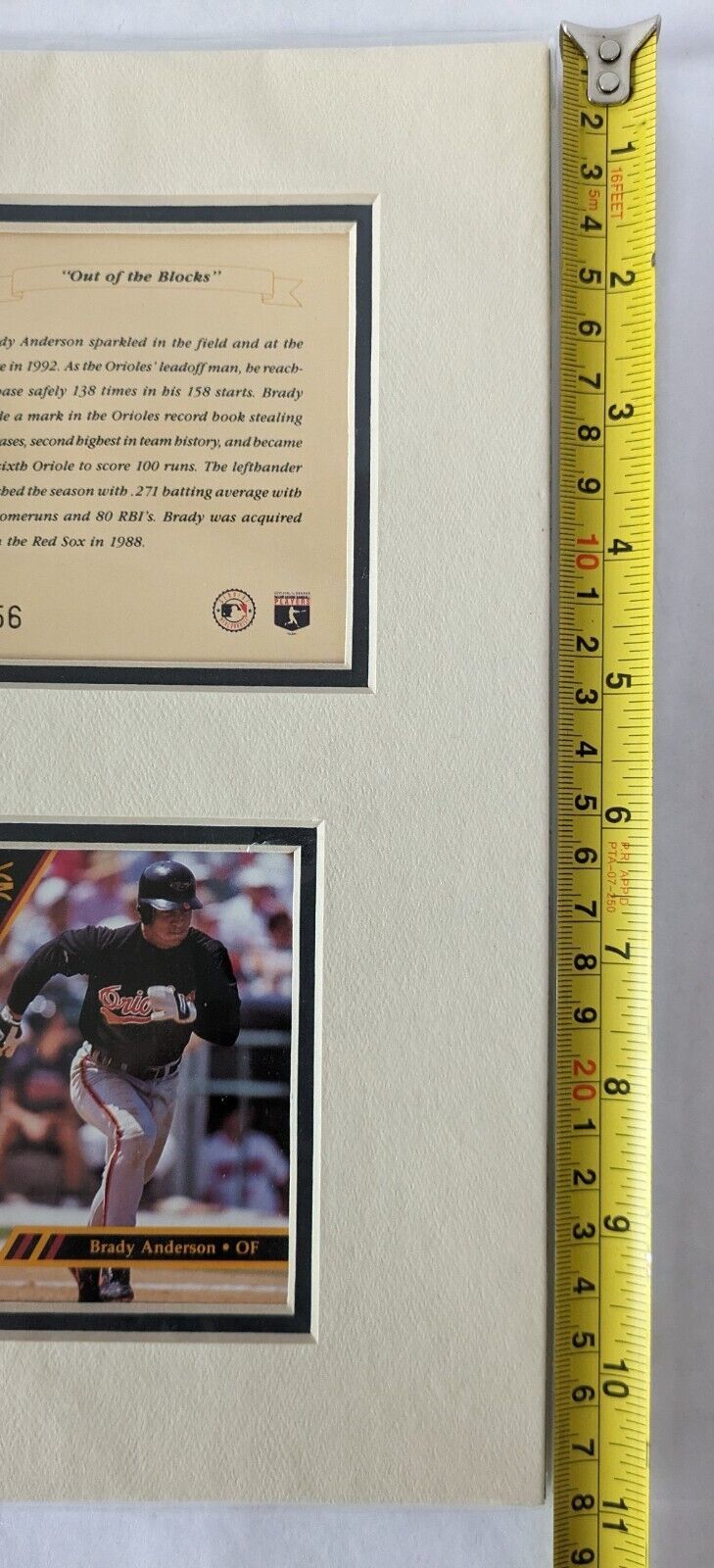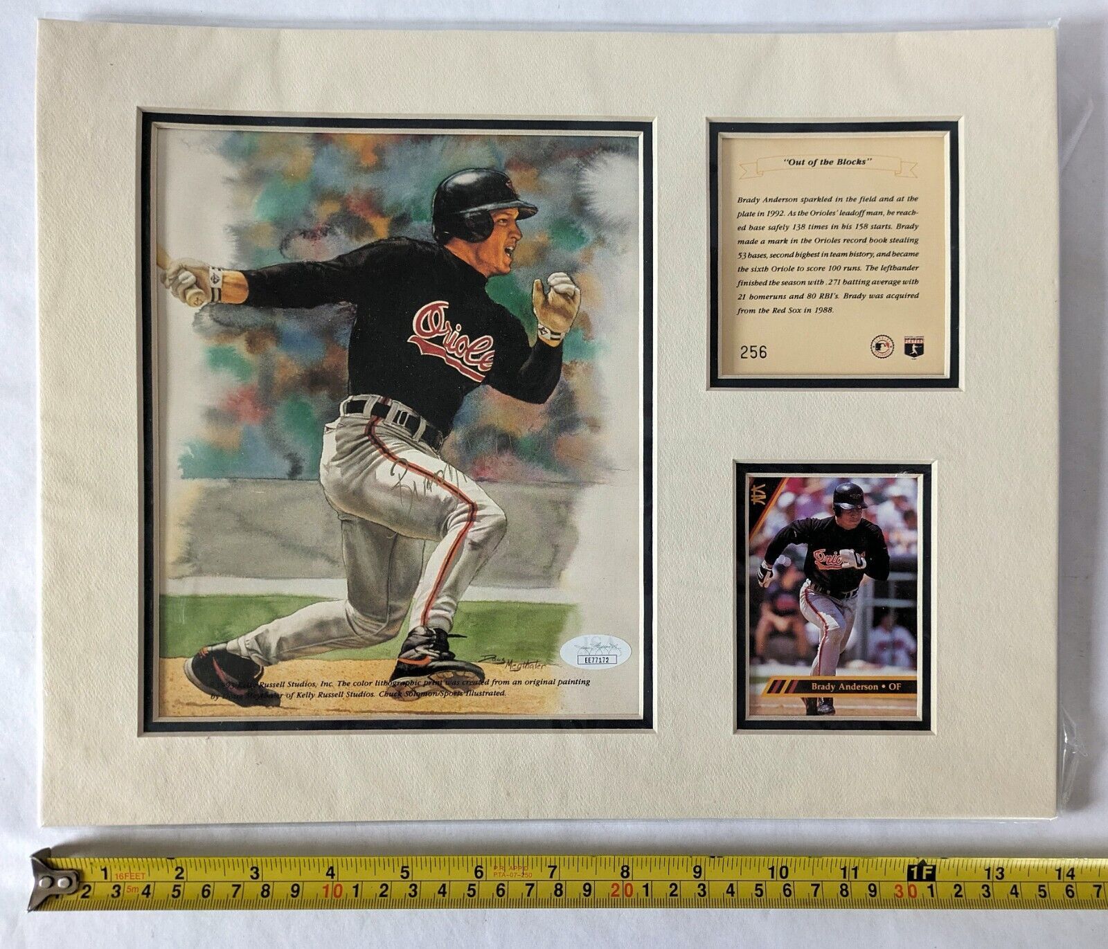Brady Anderson Signed Auto JSA COA Mat Lithograph Card 1992 Bio Limited Edition #256 "Out of the Blocks"
