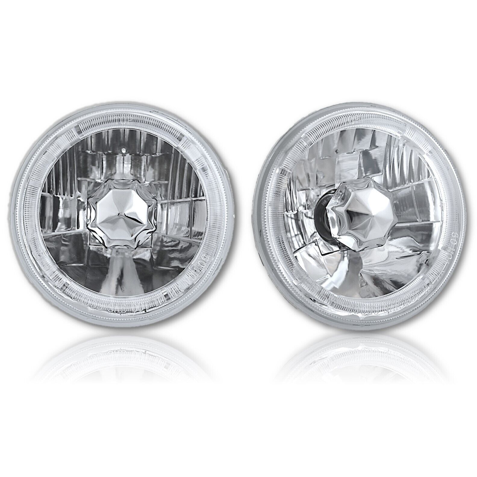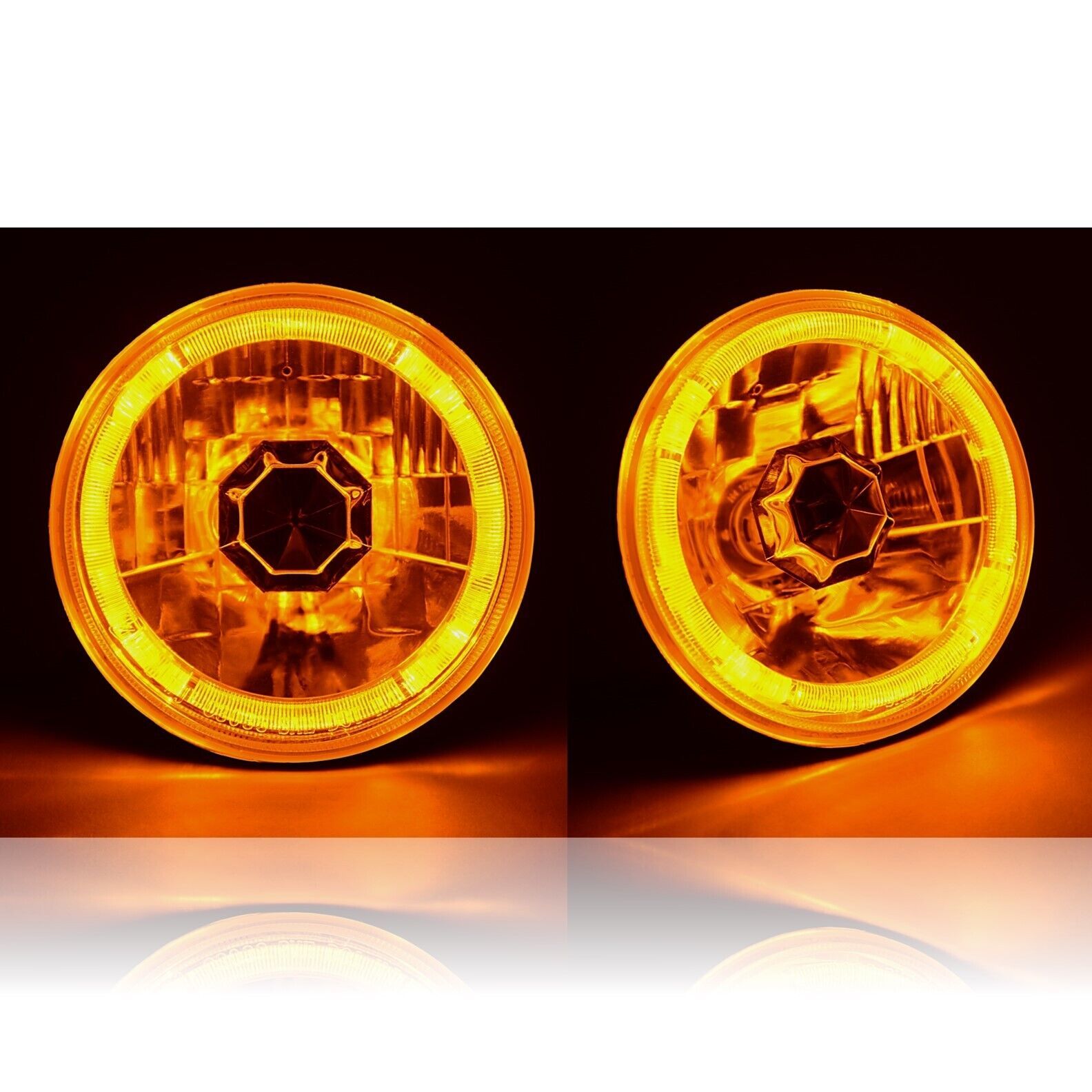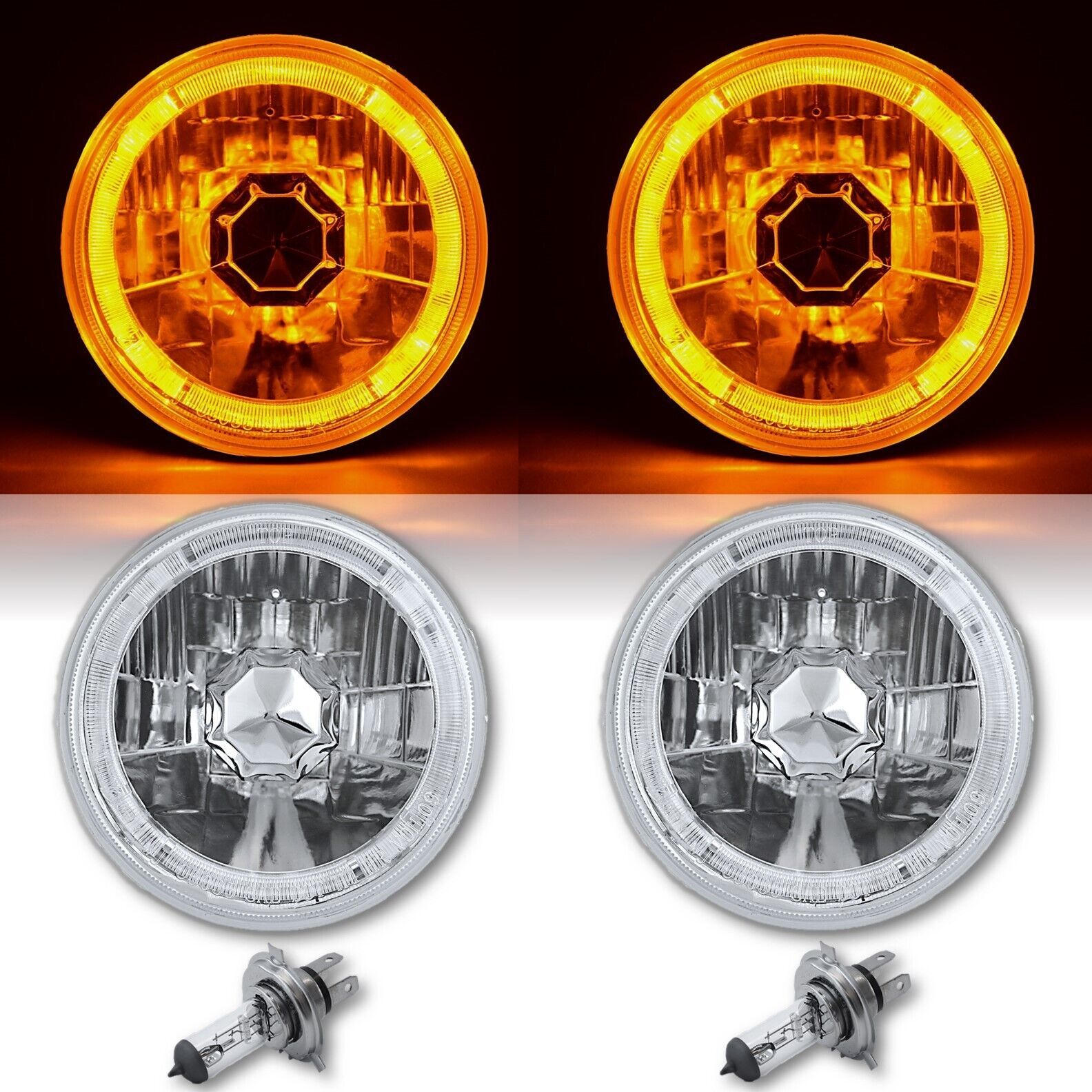 THESE ARE HALOGEN CRYSTAL CLEAR SEMI-SEALED BEAM GLASS FACED HEADLIGHTS WITH A AMBER ANGEL EYE LED HALO RING!