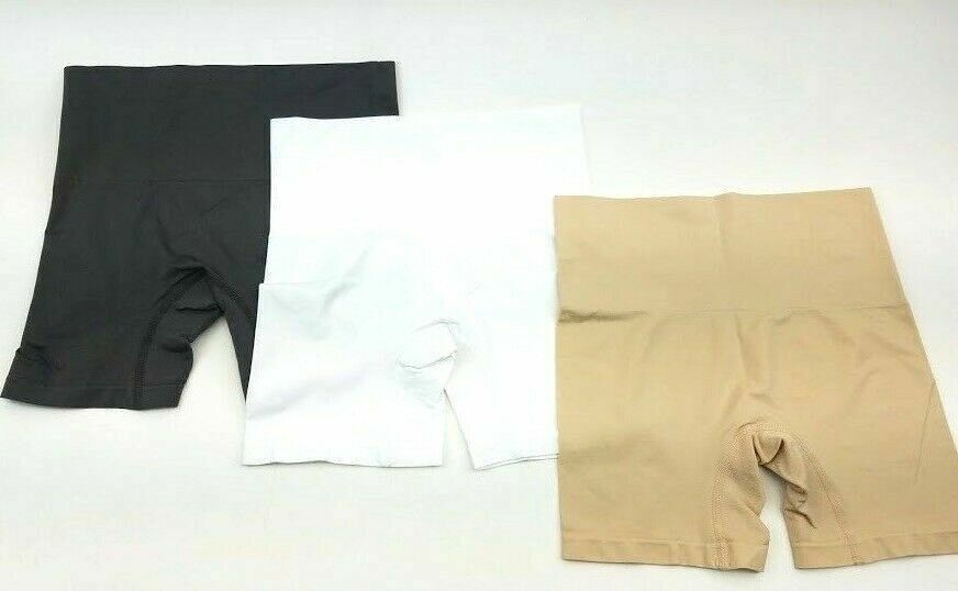 Fabrication: Seamless stretch knitStyle: High-waist shortWaist: Wide shaping panelControl/Support: Smoothing/MediumDesign Features: Elasticized leg openingsContent: Body: 93% nylon, 7% spandex; Waistband: 84% nylon, 16% spandex; Crotch: 75% nylon, 20% cotton, 5% spandexCare: Machine wash, tumble dryCountry of Origin: Imported