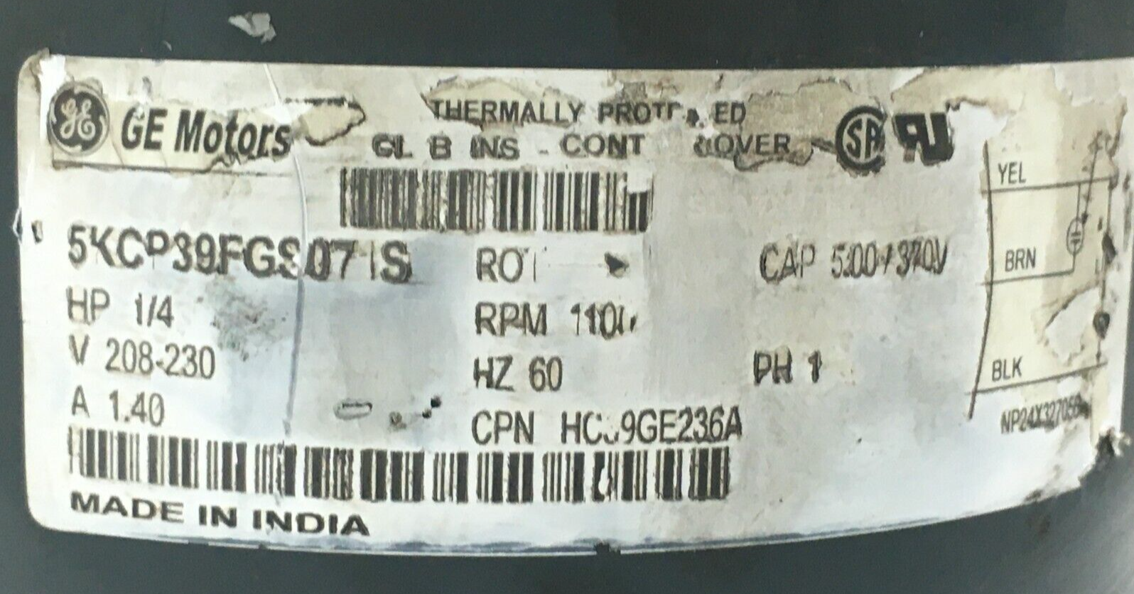 This is GE 5KCP39FGS071S Condenser FAN MOTOR 1/4 HP 208/230V HC39GE236A 1100RPM 60Hz used part.