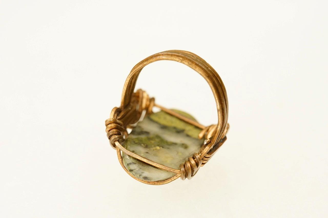 Artisan Handcrafted Jewelry Copper Wire Wrapped Green Moss Agate Ring Size 7