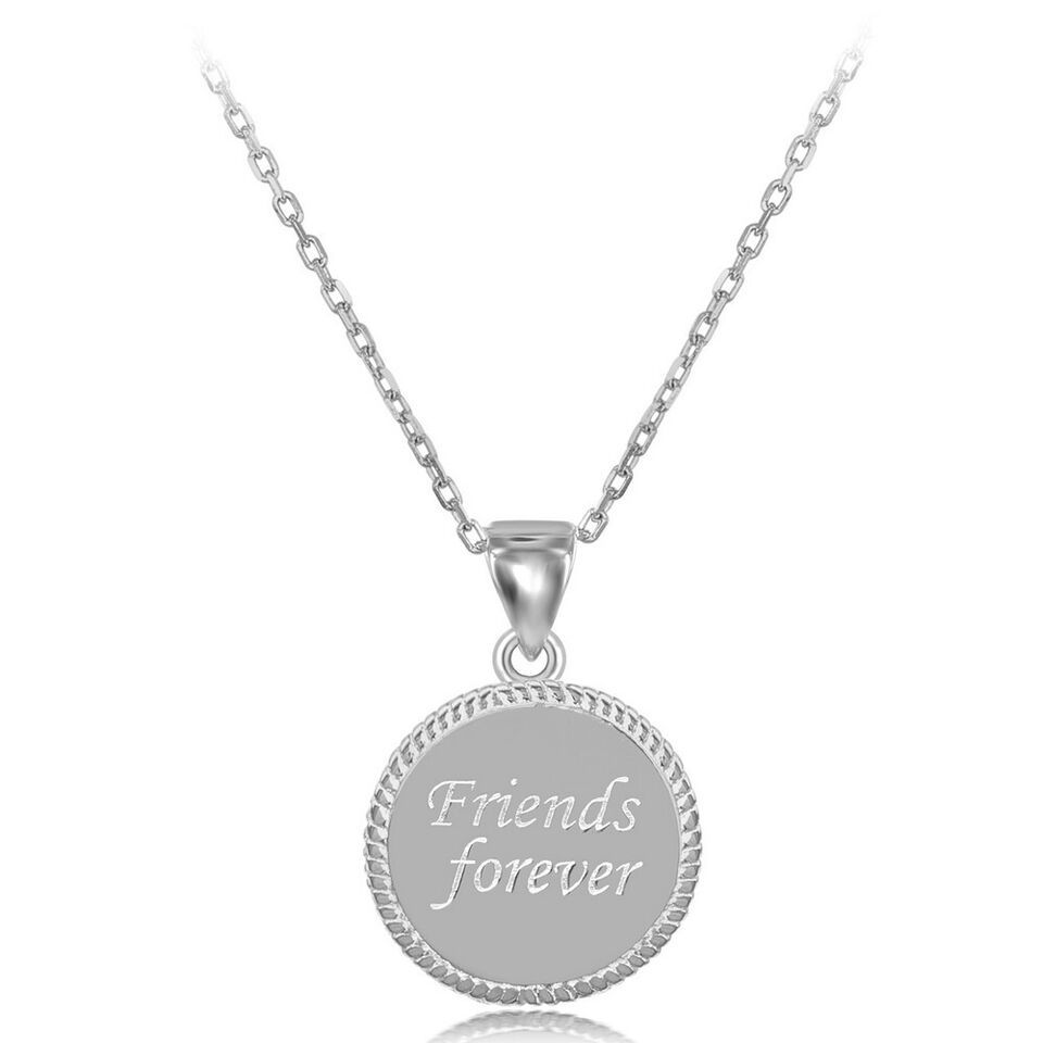 Sterling Silver Rope Border Disc "Friends Forever" Pendant W/Chain