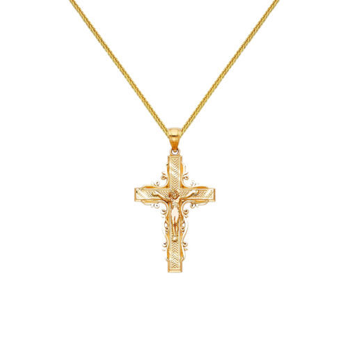 Adorned with exquisite craftsmanship, this stunning crucifix pendant is a remarkable piece made from 14-karat yellow gold. Its intricate design speaks volumes to the devout wearer, making it a perfect emblem of faith and devotion. Measuring approximately 1.33 inches in length, this pendant is not just a beautiful accessory; it?s a symbol of spiritual connection.
