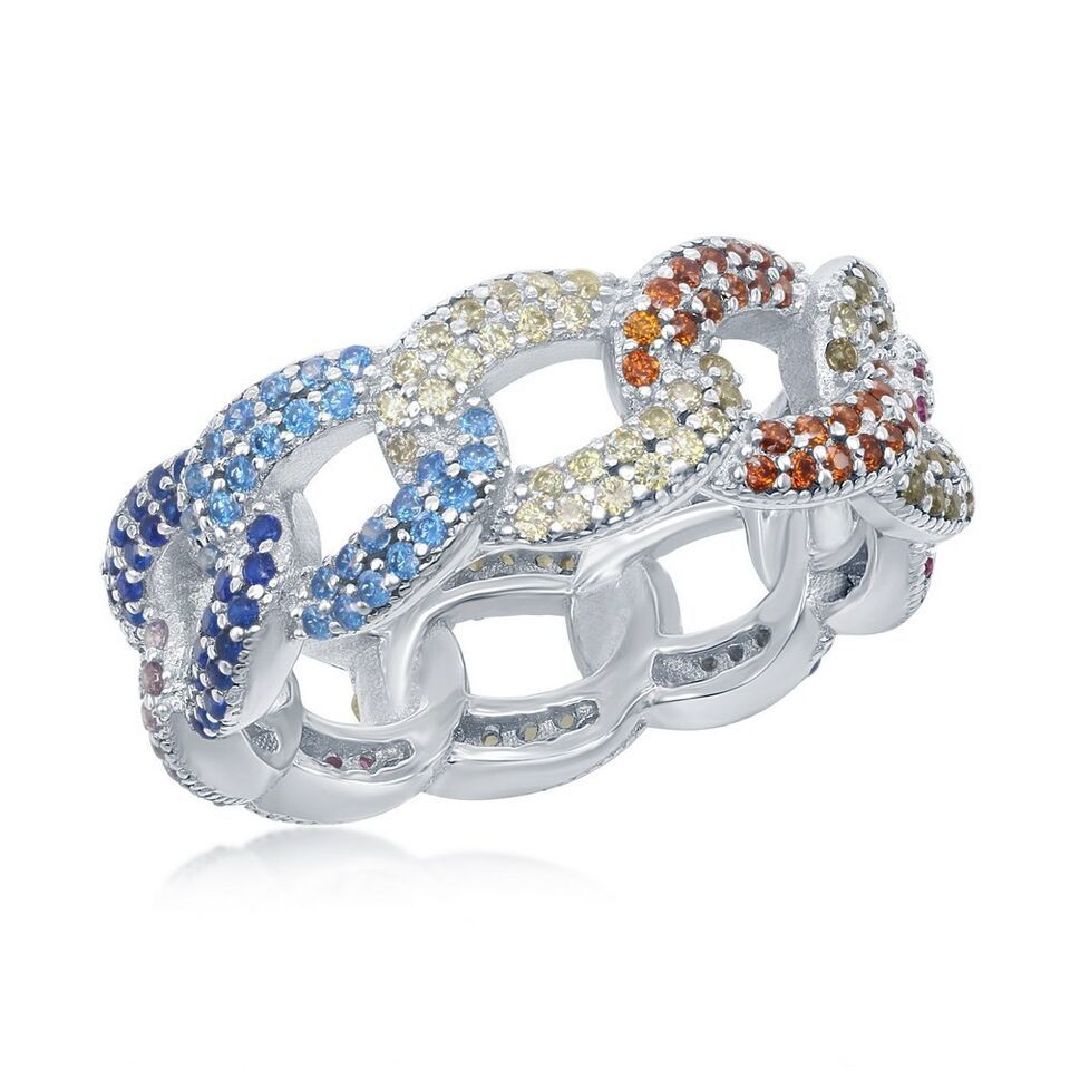 Sterling Silver Multi-Color CZ Essential Cuban Link Ring