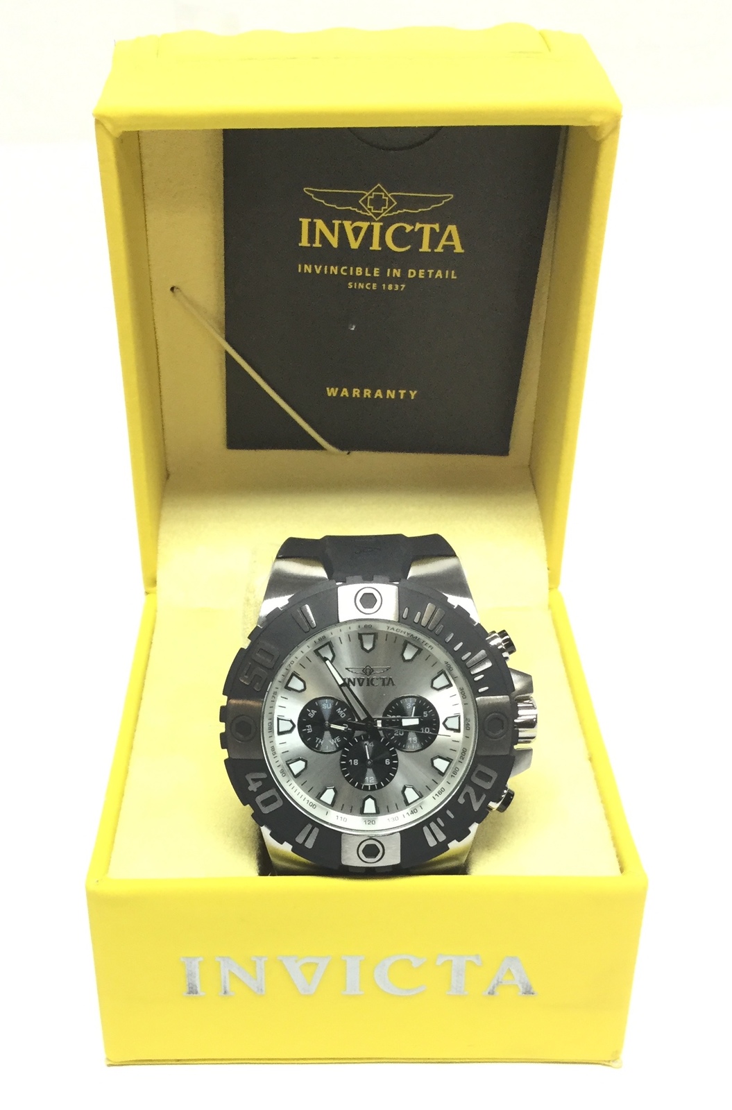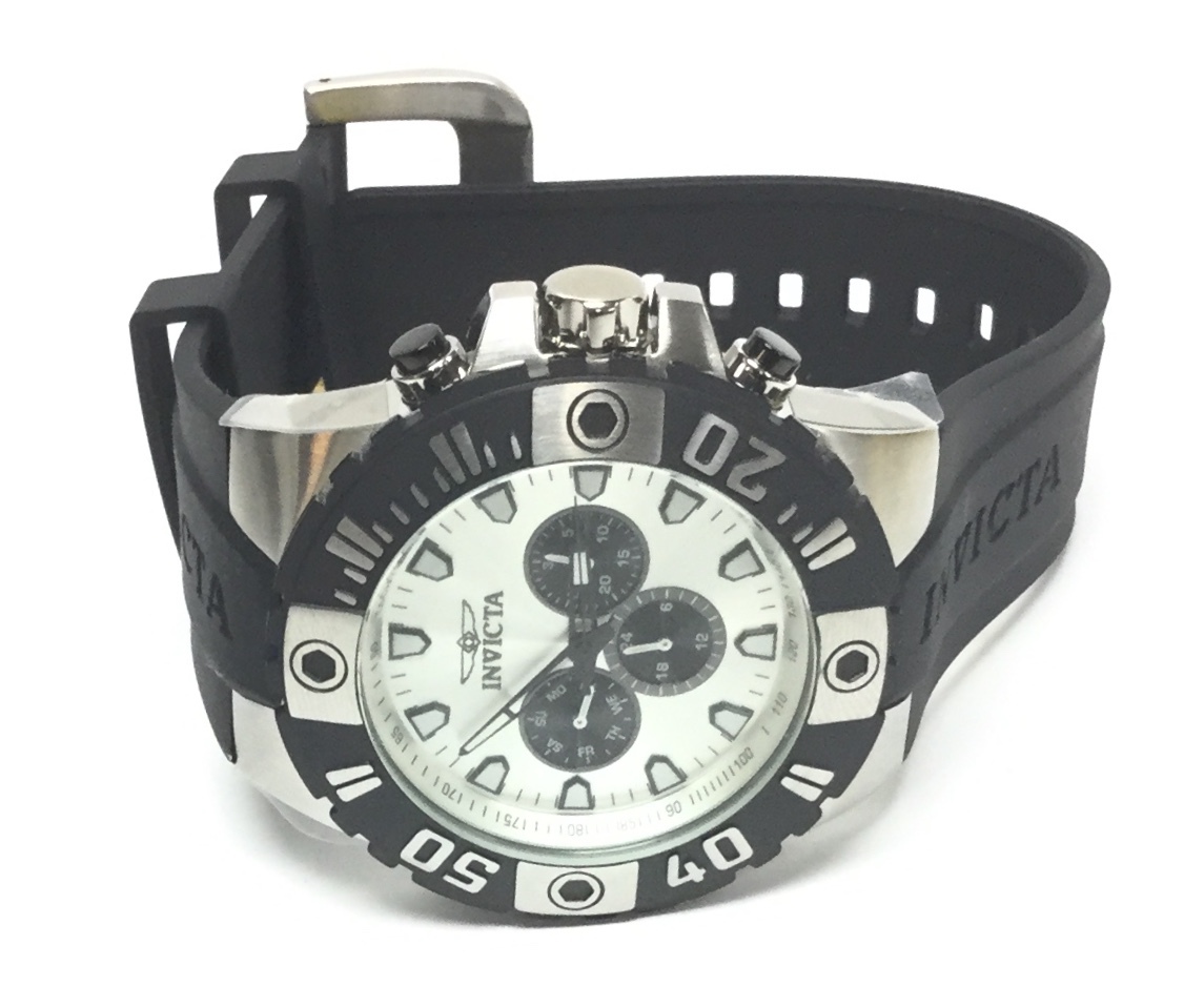 Type: Wrist watchBrand: InvictaModel number: 23969Model name: Pro Diver Master of the OceansCase width: 50mmWeight: 99.5Bracelet length: 8.5"Movement type: Quartz (Battery)Case Material: Stainless SteelBox included: yesPaperwork included: yesRunning: yesDial color: SilverBand material: SiliconeCondition:New (Open Box)