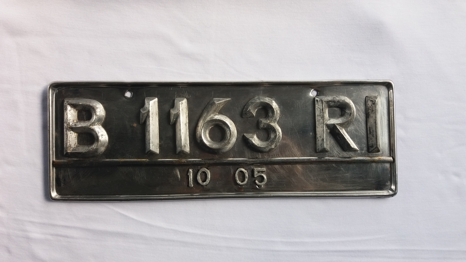 Used Stainless Steel Collectible License Car Plate B 1163 RI Indonesia 2005 (Fre