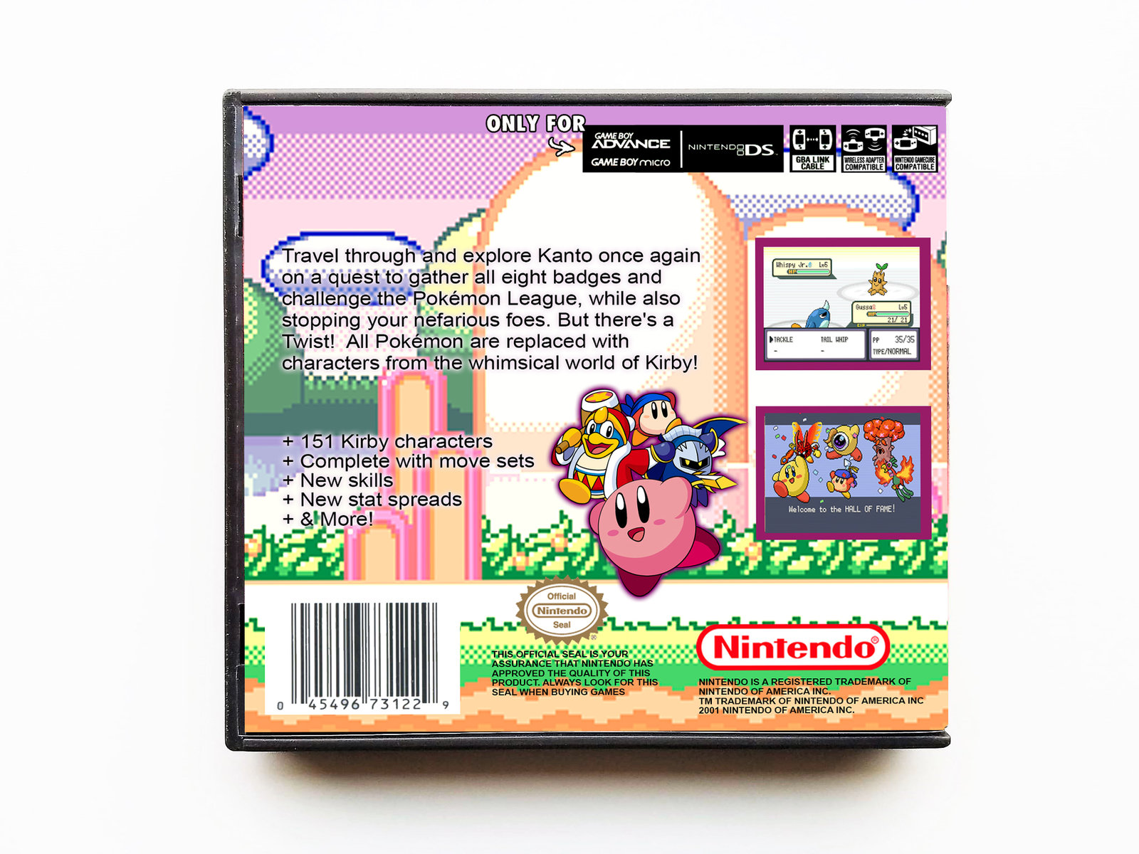 Travel through and explore Kanto once again on a quest to gather all eight badges and challenge the Pokémon League, while also stopping your nefarious foes. But there's a Twist! All Pokémon are replaced with characters from the whimsical world of Kirby!