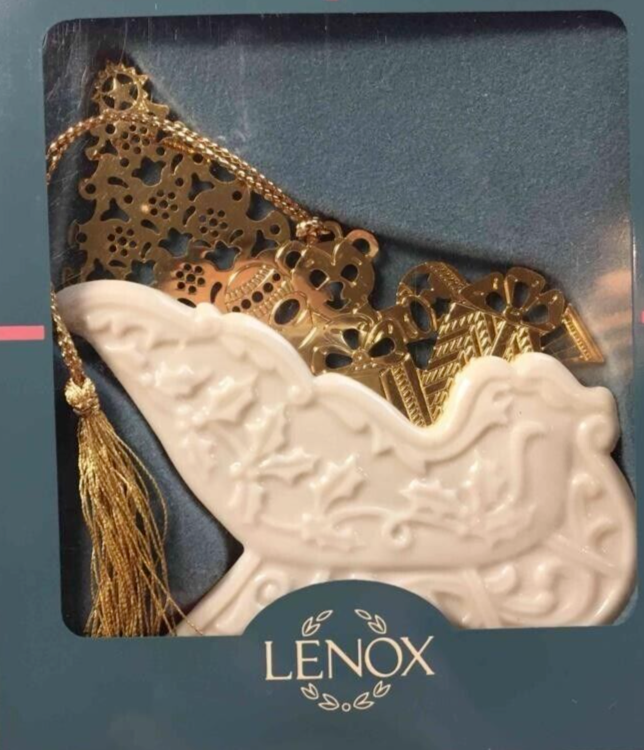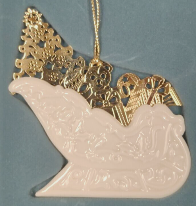 Lenox Vintage Porcelain SLEIGH Ornament Pierced Gold Christmas Tree/Toys USA New