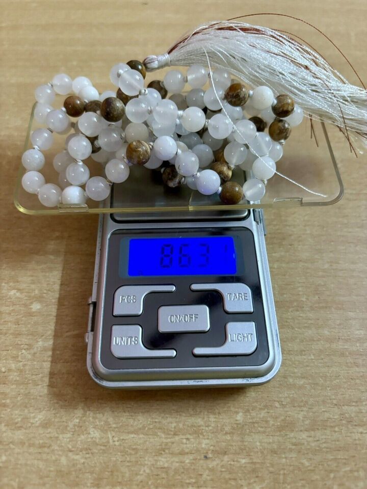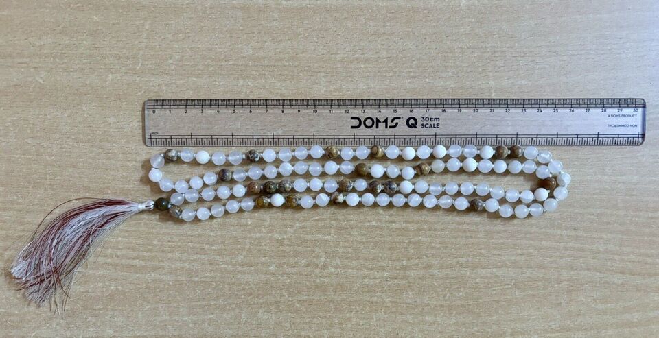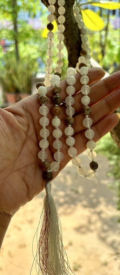 8 mm Rnd 108 + 1 perles JADE BLANC + JASPER Jaap Rosaire Japa Mala énergisé