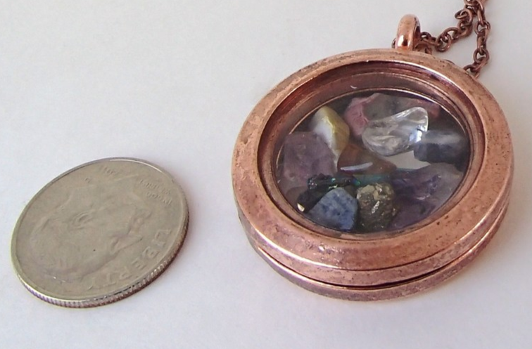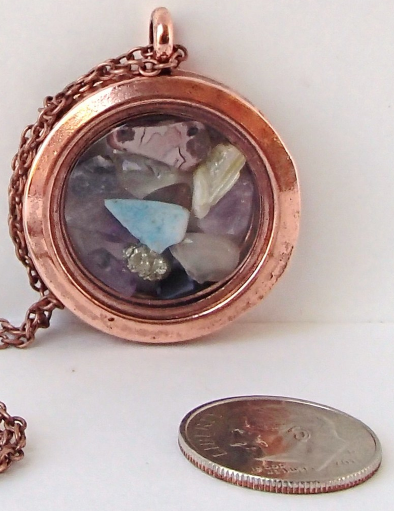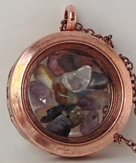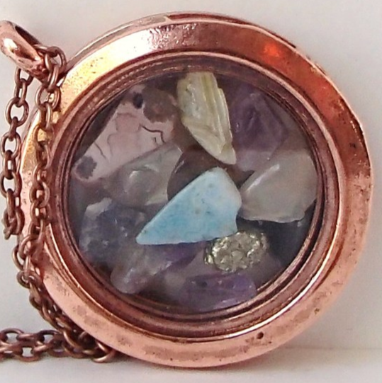 Coppertone & Glass Magnetic Locket Pendant Variety Real Gemstone Chips No Chain