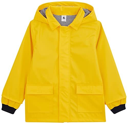 Product description: PETIT BATEAU CHILDREN'S UNISEX ICONIC RECYCLED RAINCOAT YELLOW SIZES 3-12 THE MUST-HAVE PETIT BATEAU RAINCOAT NOW COMES IN A RECYCLED FABRIC WITH AN ORGANIC COTTON LINING! Perfect for rainy days thanks to its water-repellent fabric. An useful and timeless gift! We love the practical, smart details, the ribbed cuffs and the zip fastening under a velcro placket to keep the cold out. The iconic pinstriped lining has been knit from organically farmed cotton. This raincoat is made from over 40% recycled materials thanks to technology that gives plastic waste a second lease of life. By choosing this product, you will be supporting Petit Bateau in its work protecting the planet.