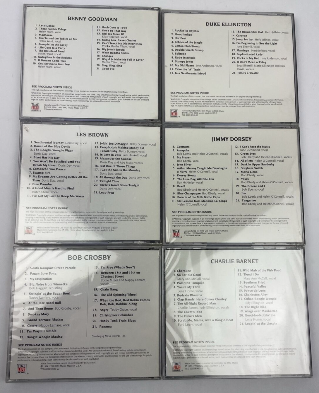Lot 6 x Time-Life Big Bands Sealed Hype Stickers Bob Crosby Les Brown Jimmy Dorsey Charlie Barnet Ellington Benny Goodman 126 tracks Audio CD's CD