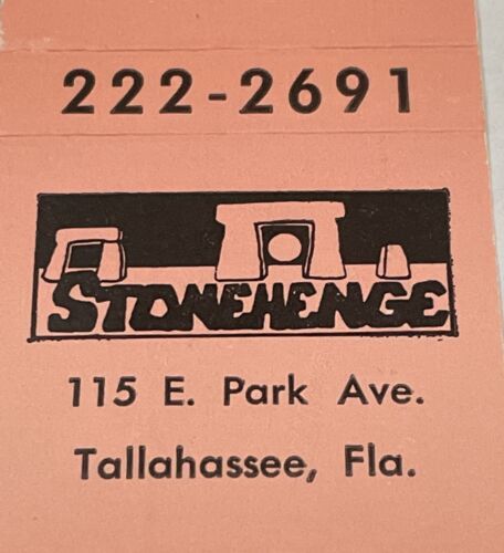 Matchbook Cover Stonehenge Rock’N Roll Entertainment Tallahassee, FL gmg