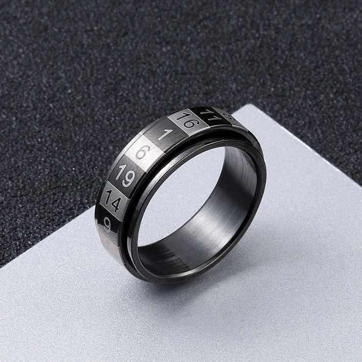Classic 316L Stainless Steel Random Numbers Game Rotation Ring