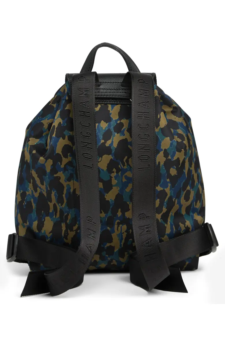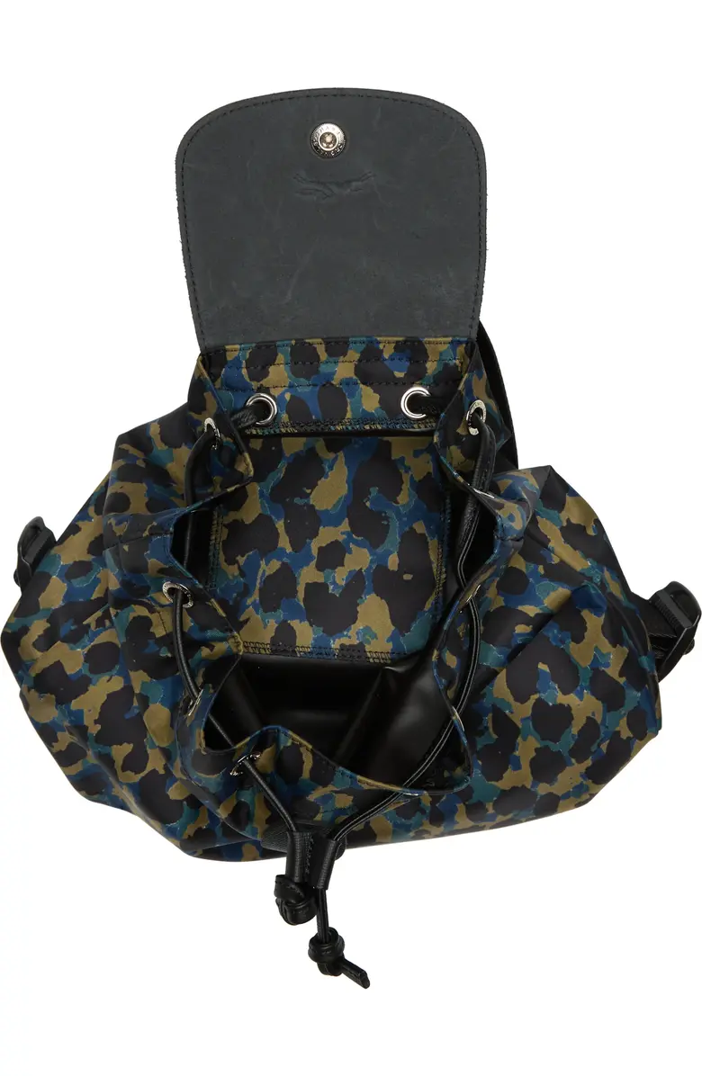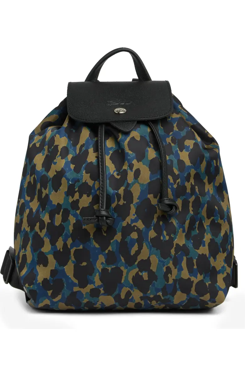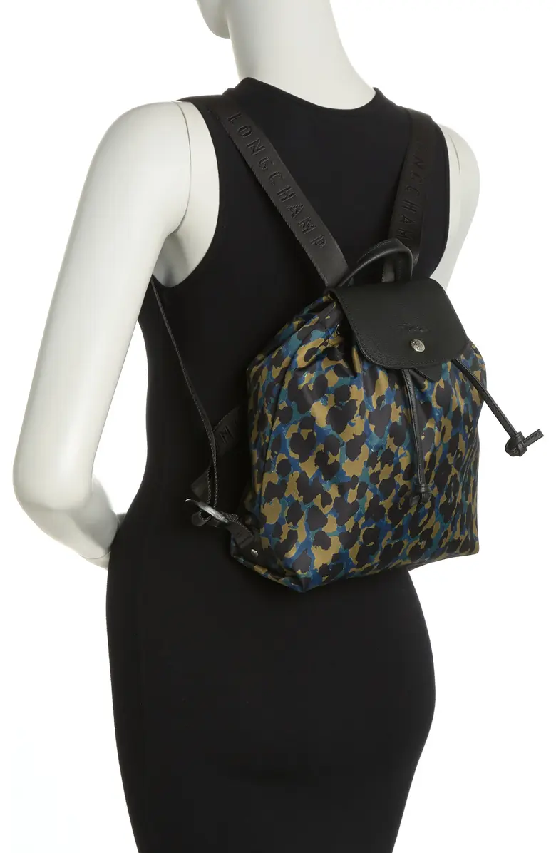 Longchamp Le Pliage Panther Animal Print Leather Trim Backpack ~NIP~ Nordic