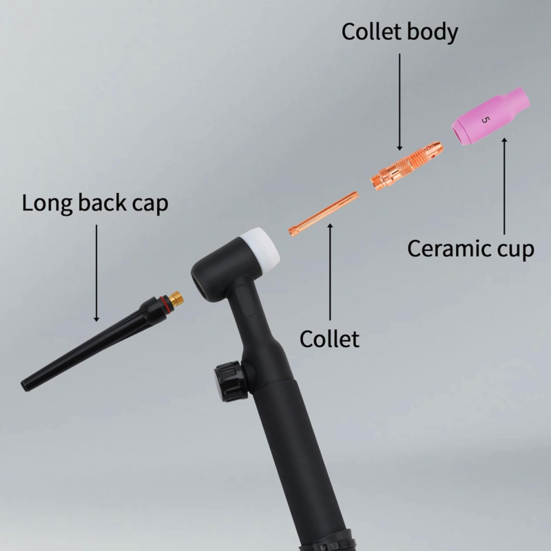 ?Package?1 * TIG Torch, 3 * Collets, 3 * Ceramic Cups, 1 * Collet Body 2.4mm,1 * Long Back Cap,1 * Short Back Cap